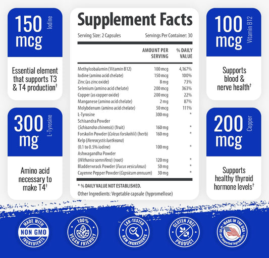 1 Body Thyroid Support Supplement with Iodine 60 capsules