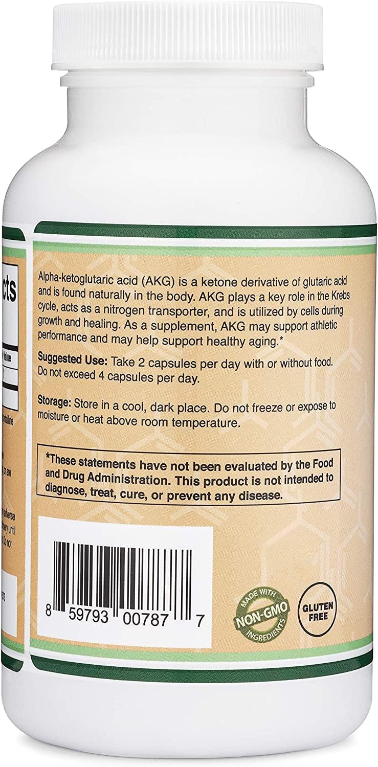AKG Supplement (Alpha Ketoglutaric Acid) 1,000mg Per Serving 180 Capsules