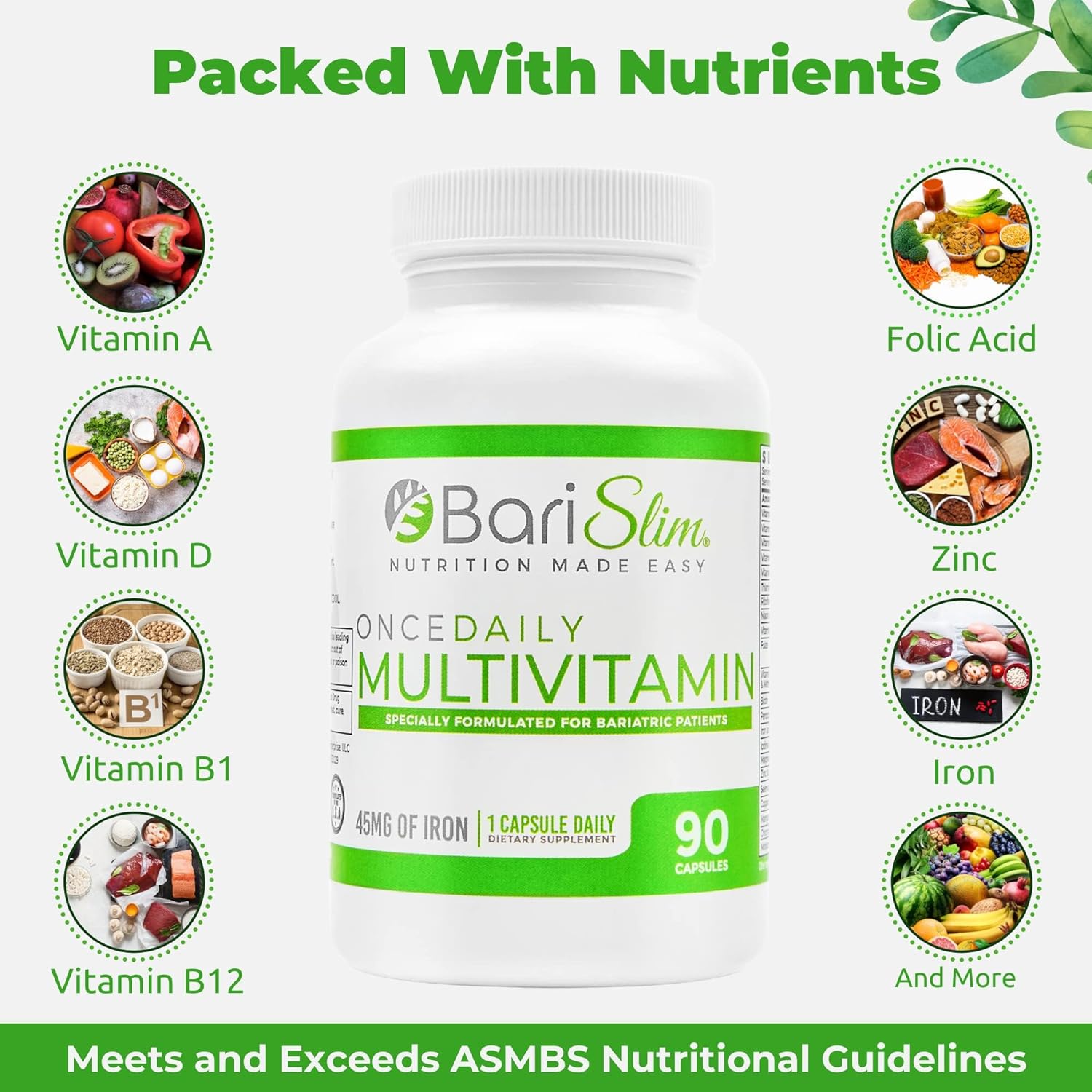 - ✅【Comprehensive Bariatric Support】: BariSlim Once Daily Bariatric Multivitamin Capsules is a complete solution for post-bariatric surgery patients, including those who have undergone gastric bypass and gastric sleeve procedures. Our formula is carefully crafted to provide the essential nutrients you need on your journey to better health. With a convenient daily dose, you can easily incorporate these capsules into your routine.