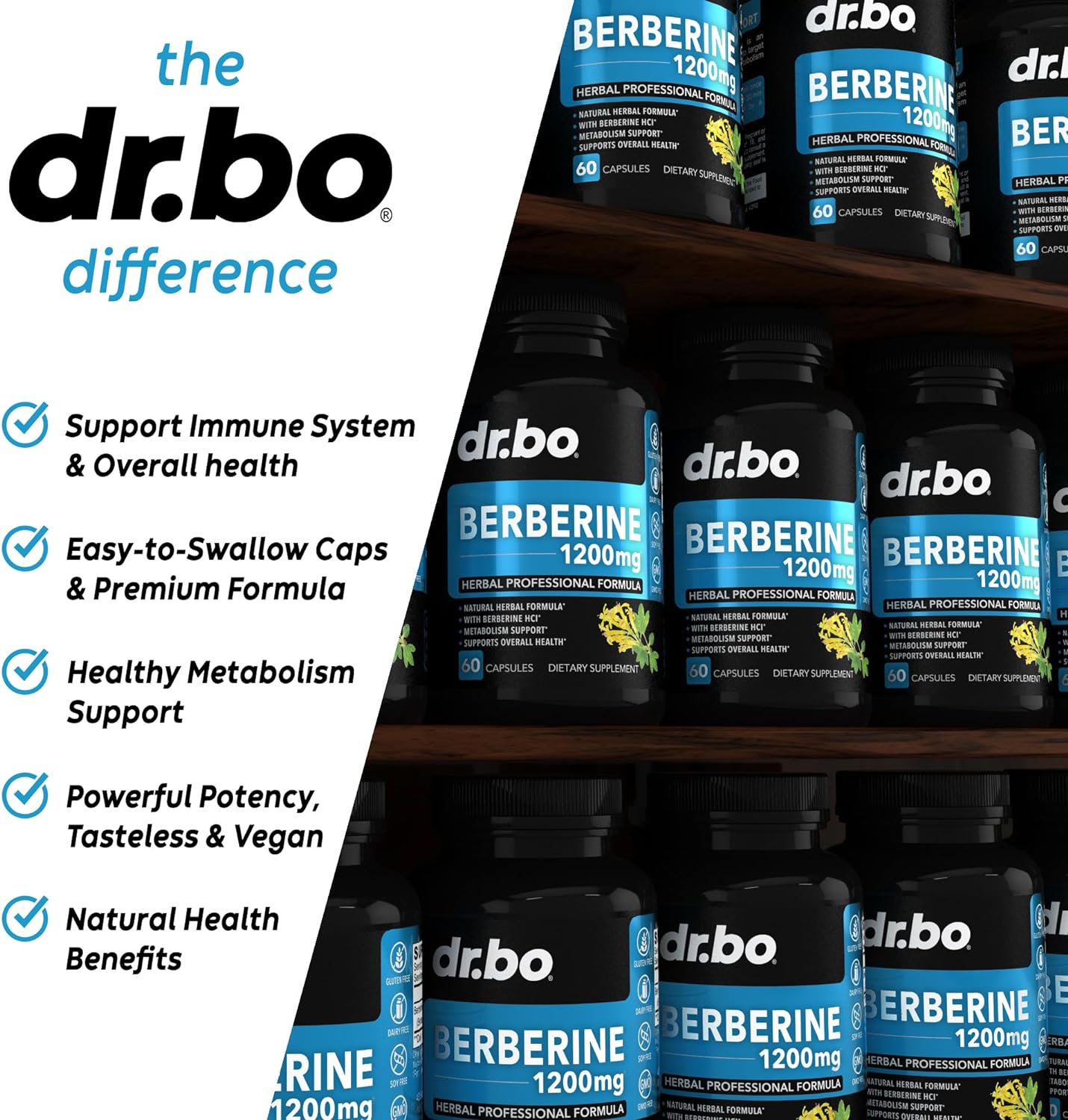 - EASY TO SWALLOW - Get our tasteless vegan berberine 1200mg supplements to support healthy metabolism. Just 2 capsules a day for 1200mg instead of only berberine 500mg or 1000mg like other brands.