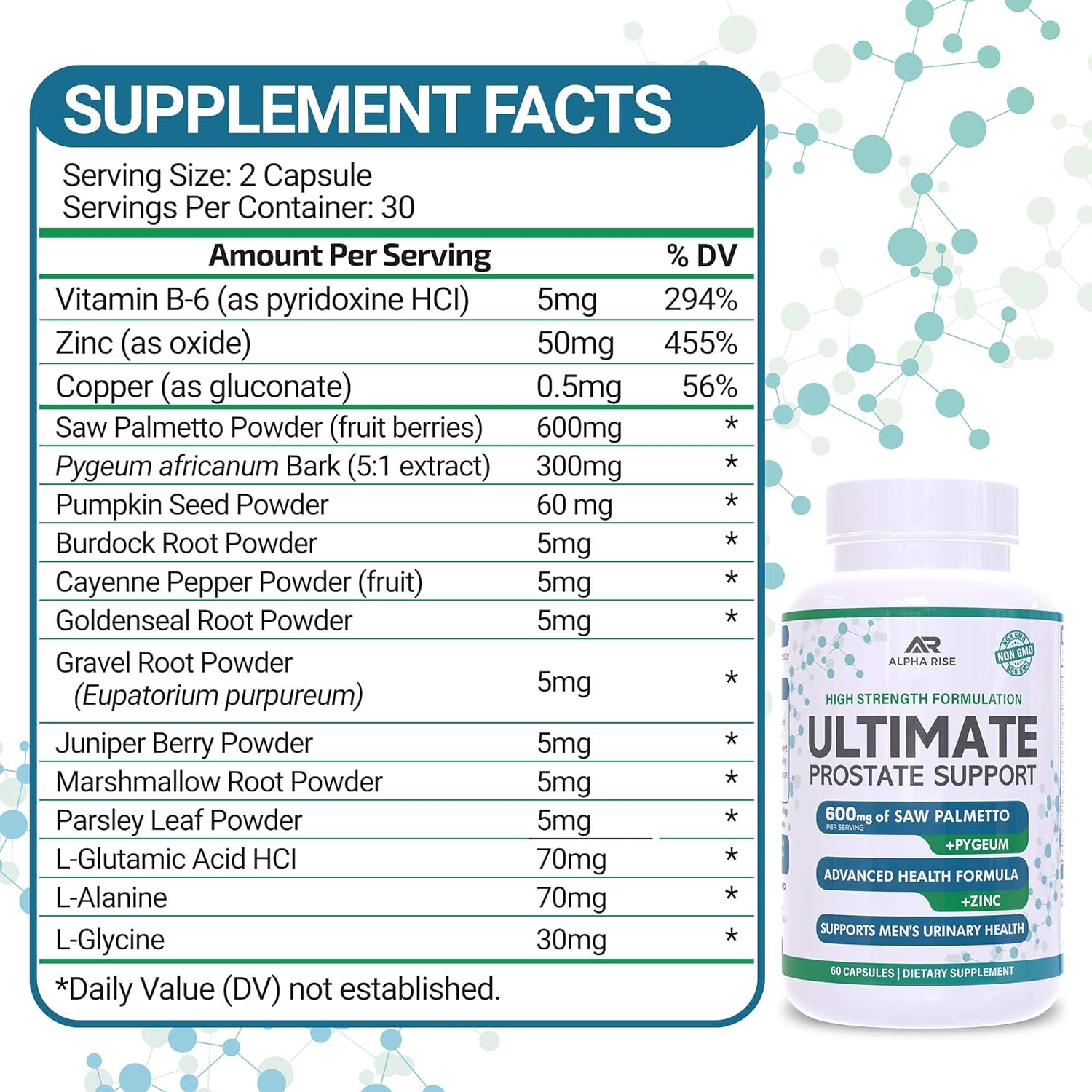 - GAIN CONFIDENCE IN THE BEDROOM! - With your issues of frequent urination managed, you’ll feel more confident and perform better in the bedroom. These prostate supplement pills for men contain zinc along with pygeum extract, and other herbs that are beneficial to men's health, making Alpha Rise the leading brand of prostate formula and bladder control supplement.
