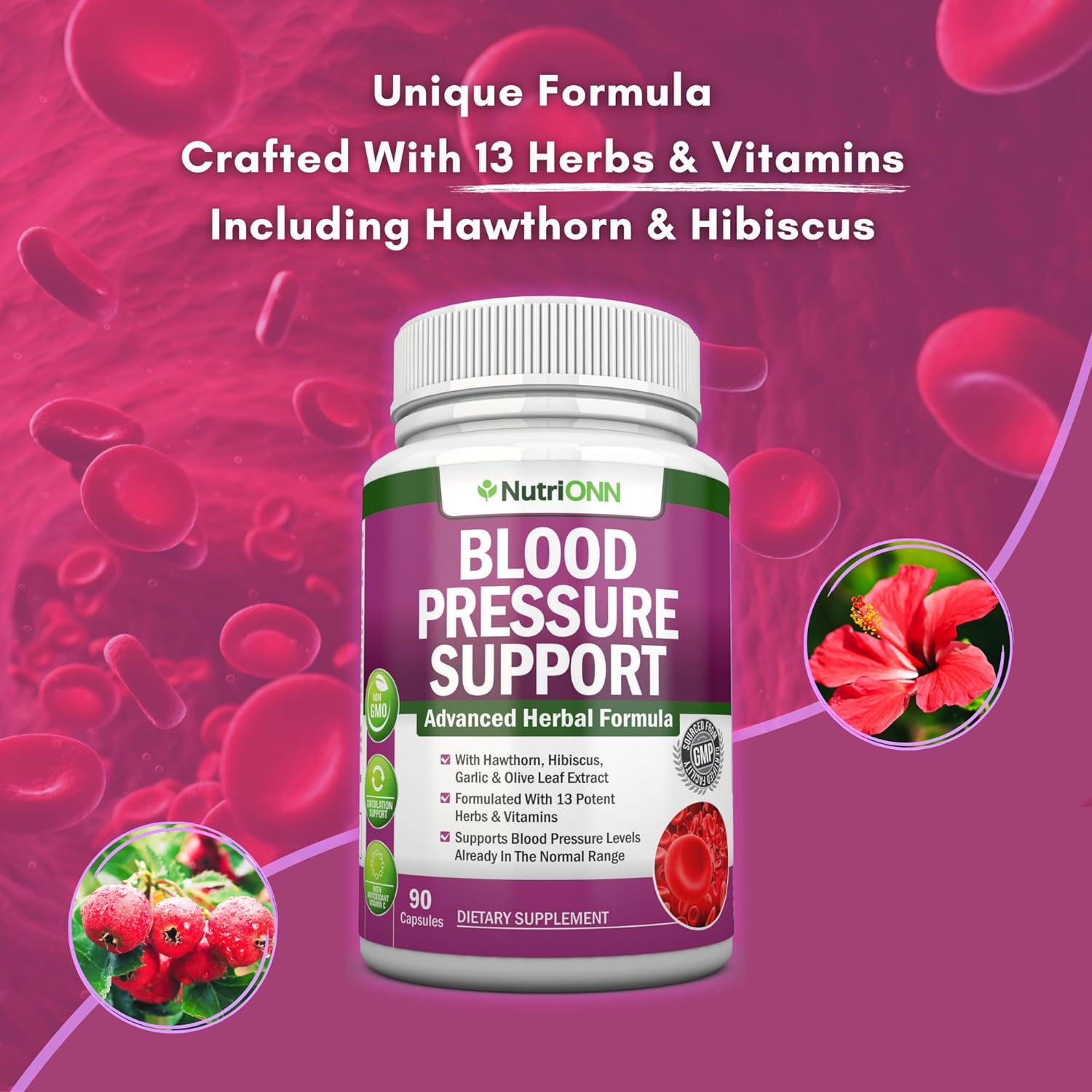 - CRAFTED WITH 13 HERBS & VITAMINS INCLUDING HAWTHORN & HIBISCUS - Immerse yourself in our GMO-free formula boasting 13 potent herbs and vitamins, including the fantastic four: Hawthorn, Hibiscus, Garlic, and Olive Leaf.