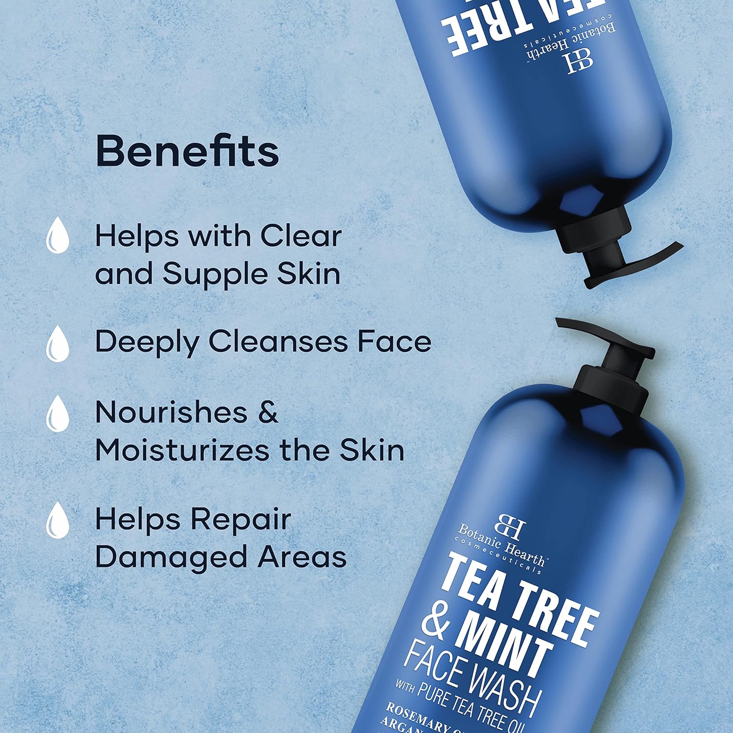 - Helps with Clear & Supple Skin : The Botanic Hearth Tea Tree & Mint Facewash is made with the goodness of powerful ingredients like Tea Tree, Coconut, Rosemary, and Argan Oils that help deeply hydrate the skin & keep dry and irritated skin at bay