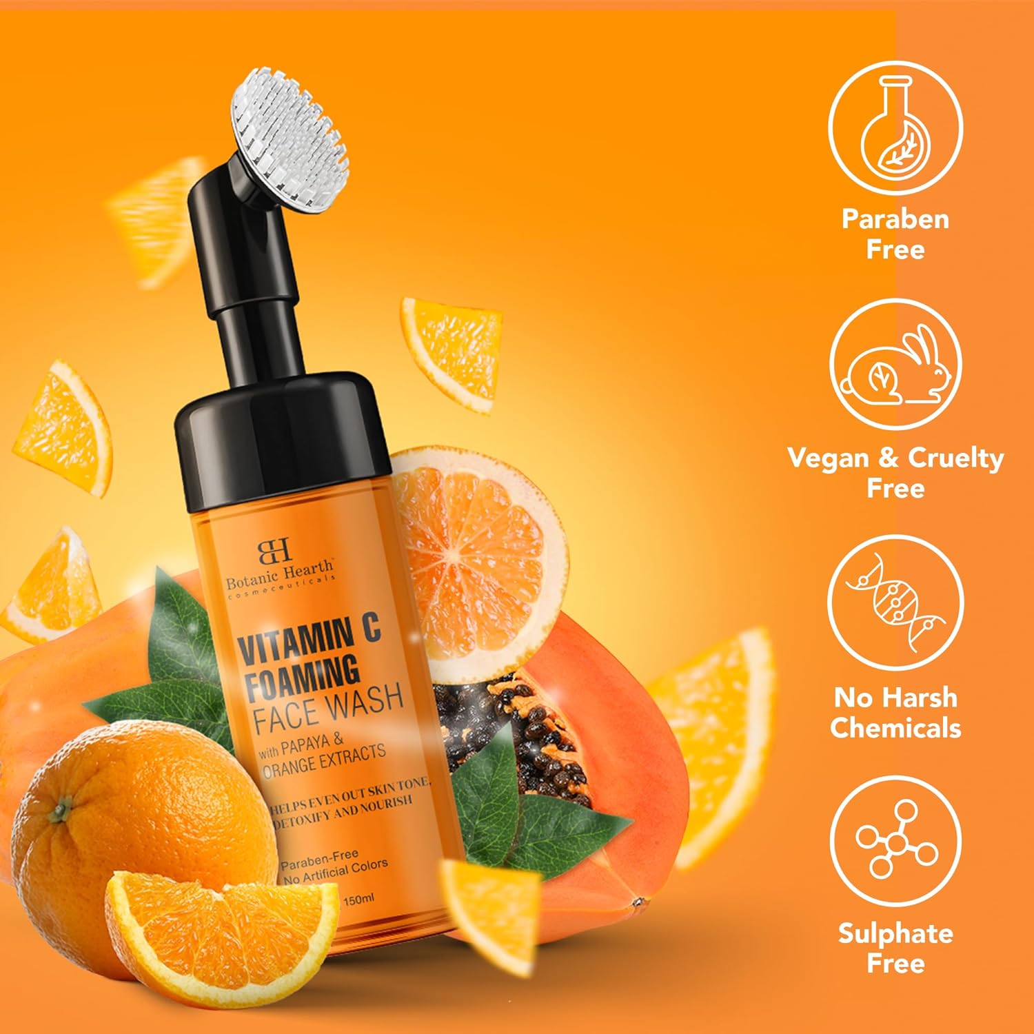 - Helps Reduce Dullness: The Vitamin C foaming face wash is formulated with safe and gentle ingredients that effectively cleanse and exfoliate, thereby helping in reducing dullness & dark spots