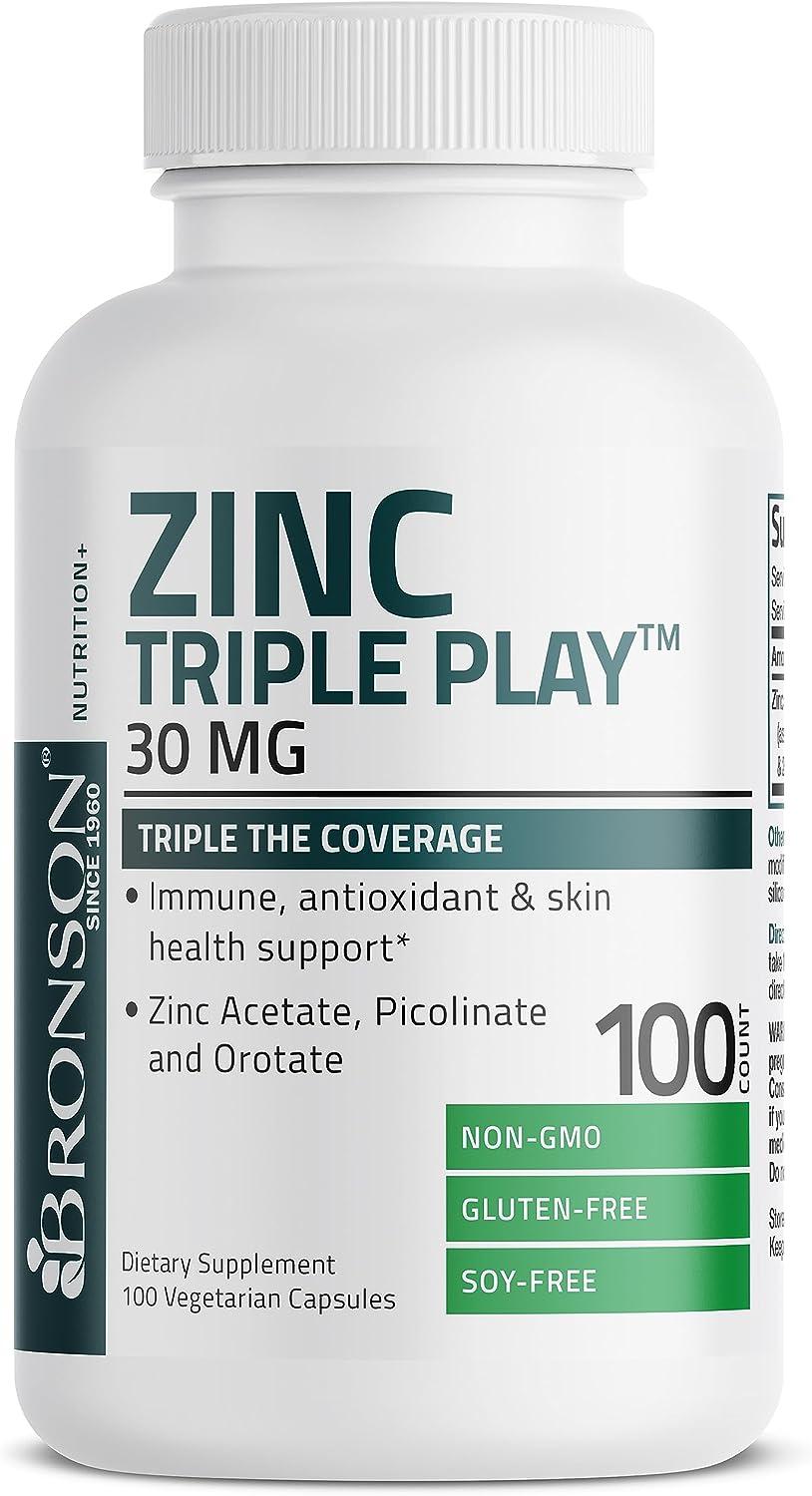 - Triple The Support Complex: Zinc is a vital mineral for our immune system and natural defenses. Bronson’s Zinc Triple Play combines 3 forms of this essential trace mineral to work together for superior coverage. By combining Zinc Acetate, Picolinate, and Orotate, Zinc Triple Play helps to support a healthy immune system, antioxidant levels and overall skin health.*