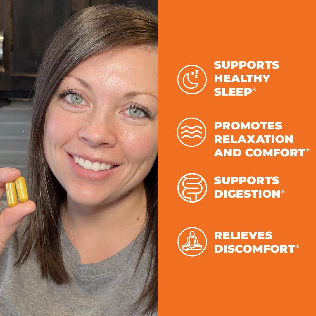 - ENCOURAGES RESTFUL SLEEP. Turmeric Chamomile Curcuma Capsules are formulated for Relaxation & Sleep Support. With Chamomile Flower & Ginger Root to Soothe your Mind & Body before bedtime. Get the Revitalizing Sleep you need. No flowery aftertaste.*
