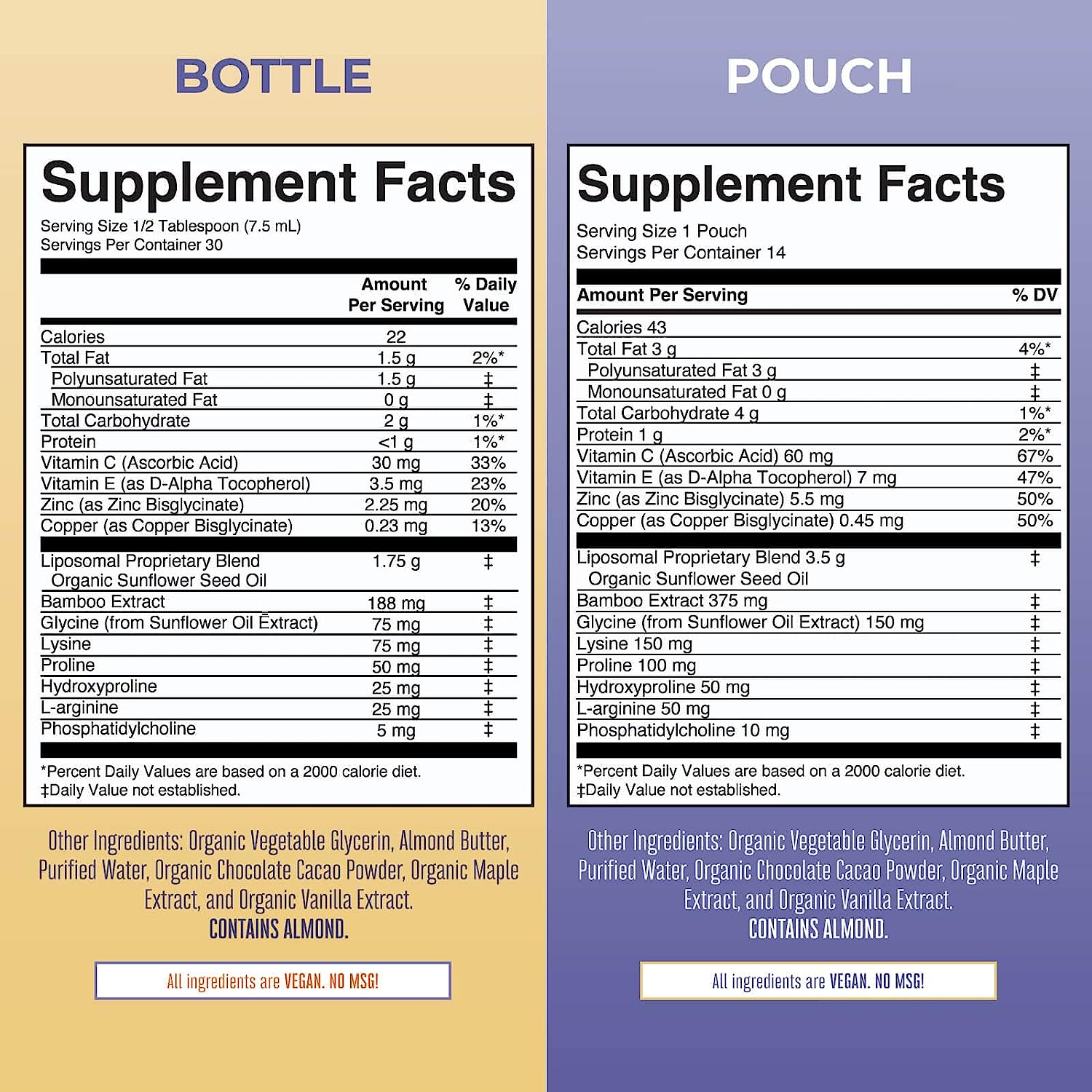 For Most Lifestyles: MaryRuth's Collagen Boosting Liposomal is Non-GMO | Vegan | Dairy Free | Gluten & Wheat Free | Soy Free | Corn Free | Nightshade Free | Sugar Free. No Artificial Colors. Made in a GMP (Good Manufacturing Practice) Facility. This product contains ALMONDS. For optimal flavor and product performance | we recommend refrigeration before and after opening.