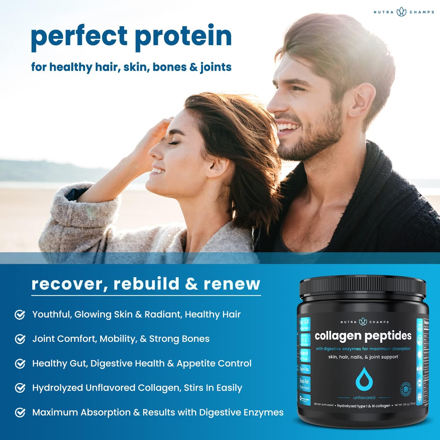 Digestive Enzymes for Maximum Benefits - On your search for the perfect collagen, look for a powder that includes the vital digestive enzymes your body needs to break down and properly utilize these proteins. When it comes to absorption and effects, other collagen powders just fall short. With NutraChamps’ premium enzyme-enhanced formula, you’ll start unlocking the complete benefits of this incredible supplement today.