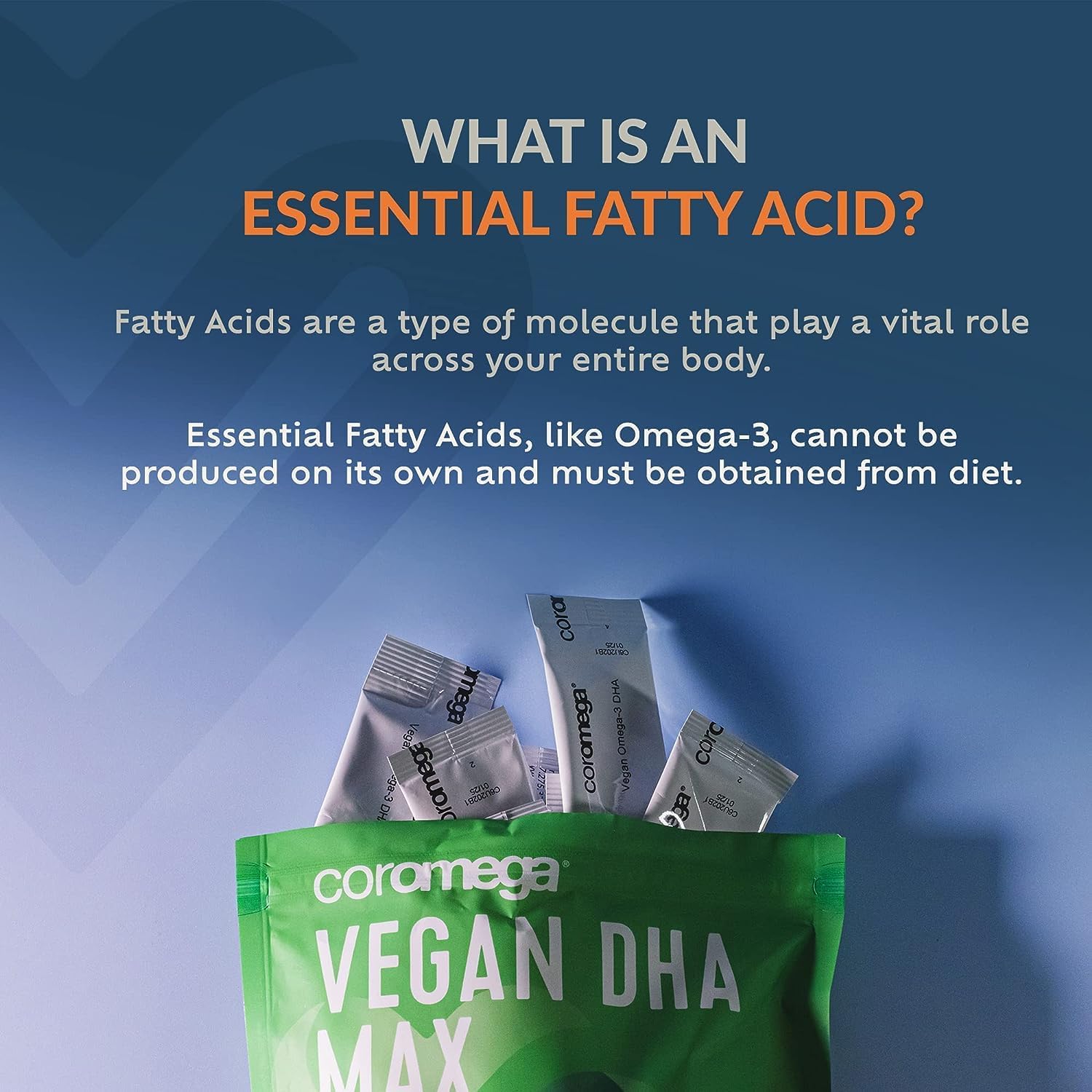 Max out your health with our Vegan DHA Max formula. Everything you love about our original Omega-3 pouches, but made vegan! 500 mg of Omega-3 Algal oil plus 200 mg of DHA that will give you all the heart, body, and mental health benefits you need. Plus, an incredible orange flavor.