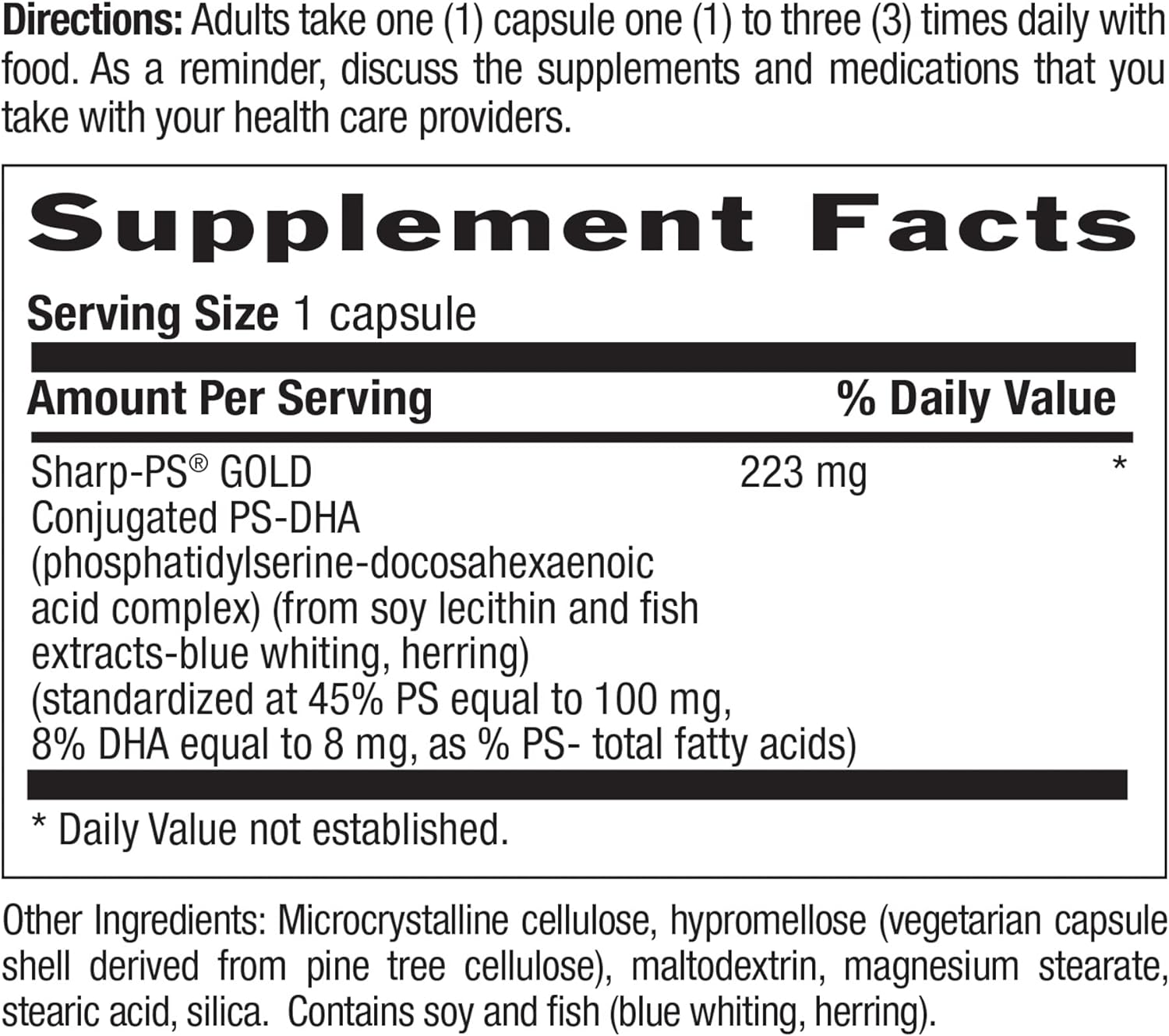 - Memory & recall – Contains 223mg clinically studied Sharp-PS Gold’s Phosphatidylserine with DHA supports memory and faster recall
