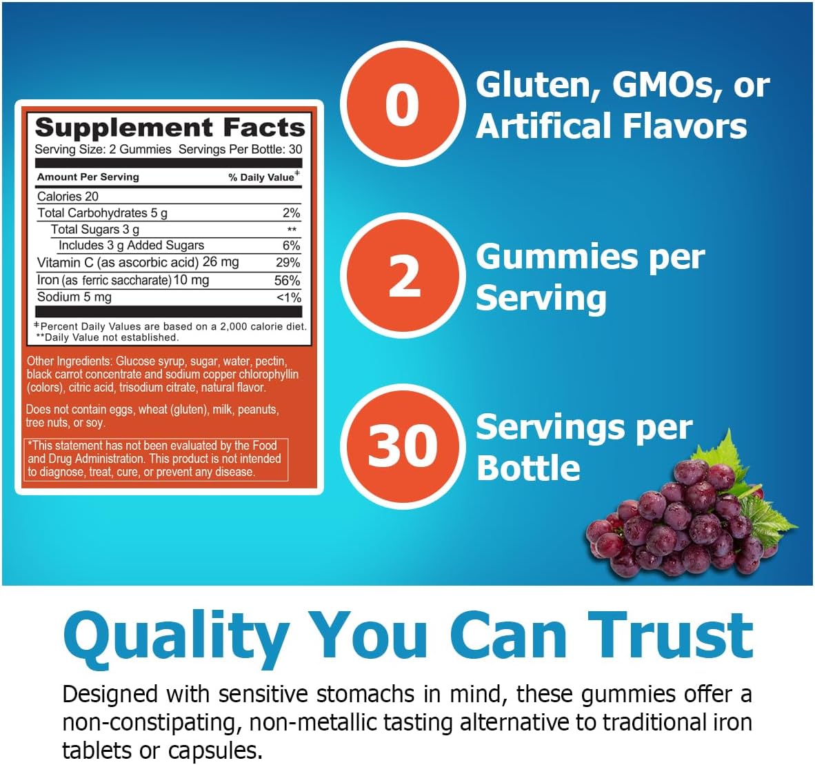 Doctor's Finest Iron with Vitamin C, Grape - 60 Gummies