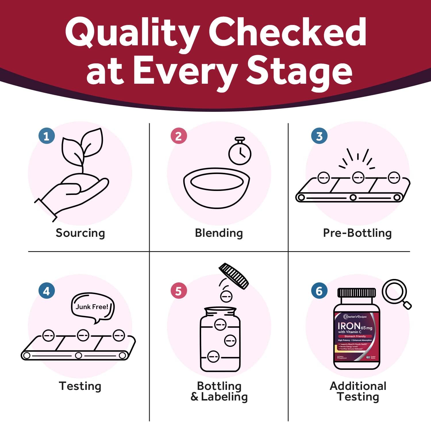 - Proudly Made in the USA: Our advanced strength formula is loaded with the highest grade & naturally sourced ingredients in a GMP certified facility in the USA. Doctor’s Recipes Iron is 100% pure, natural, vegan friendly & NON-GMO with no soy, gluten and dairy.