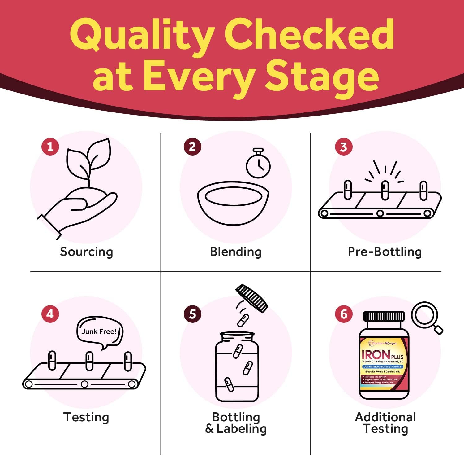 - Proudly Made in the USA: Our advanced strength formula is loaded with the highest grade & naturally sourced ingredients in a GMP certified facility in the USA. Doctor’s Recipes Iron supplement is 100% pure, natural, vegan friendly & NON-GMO with no soy, gluten and dairy.