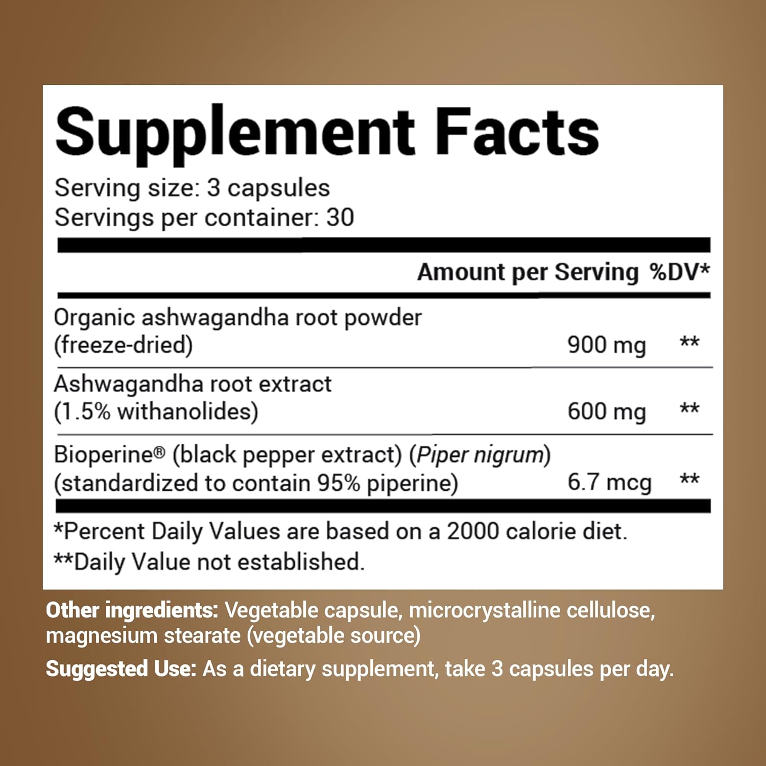 - ๐๐ฆ๐๐ช๐๐๐๐ก๐๐๐ ๐๐๐ฃ๐ฆ๐จ๐๐๐ฆ - Our Ashwagandha is grown in nutrient-rich soil and is very concentrated and strong! It includes 900 mg of organic ashwagandha root powder and 600 mg of ashwagandha root extract. Plus, we included an incredible source of Bioperine (black pepper). Includes 90 capsules.
