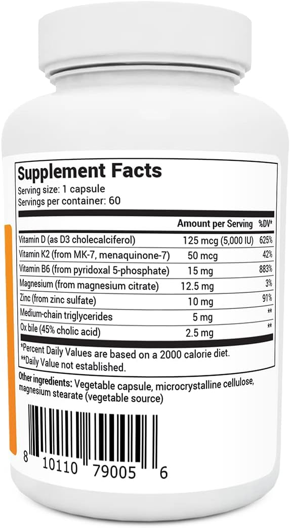 - ๐ฉ๐๐ง๐๐ ๐๐ก ๐๐ฏ ๐๐ก๐ ๐๐ฎ - This Vitamin D3 K2 supplement is made with 5,000 IUs of Vitamin D3 and 50 mcg of Vitamin K2. It also includes a unique blend of Vitamin B6, Zinc, Magnesium, MCT and OxBile you won't find in other brands - Includes a 60 day supply