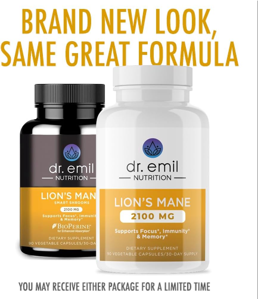 DR EMIL NUTRITION 2100mg Organic Lions Mane Supplement Capsules 90 count