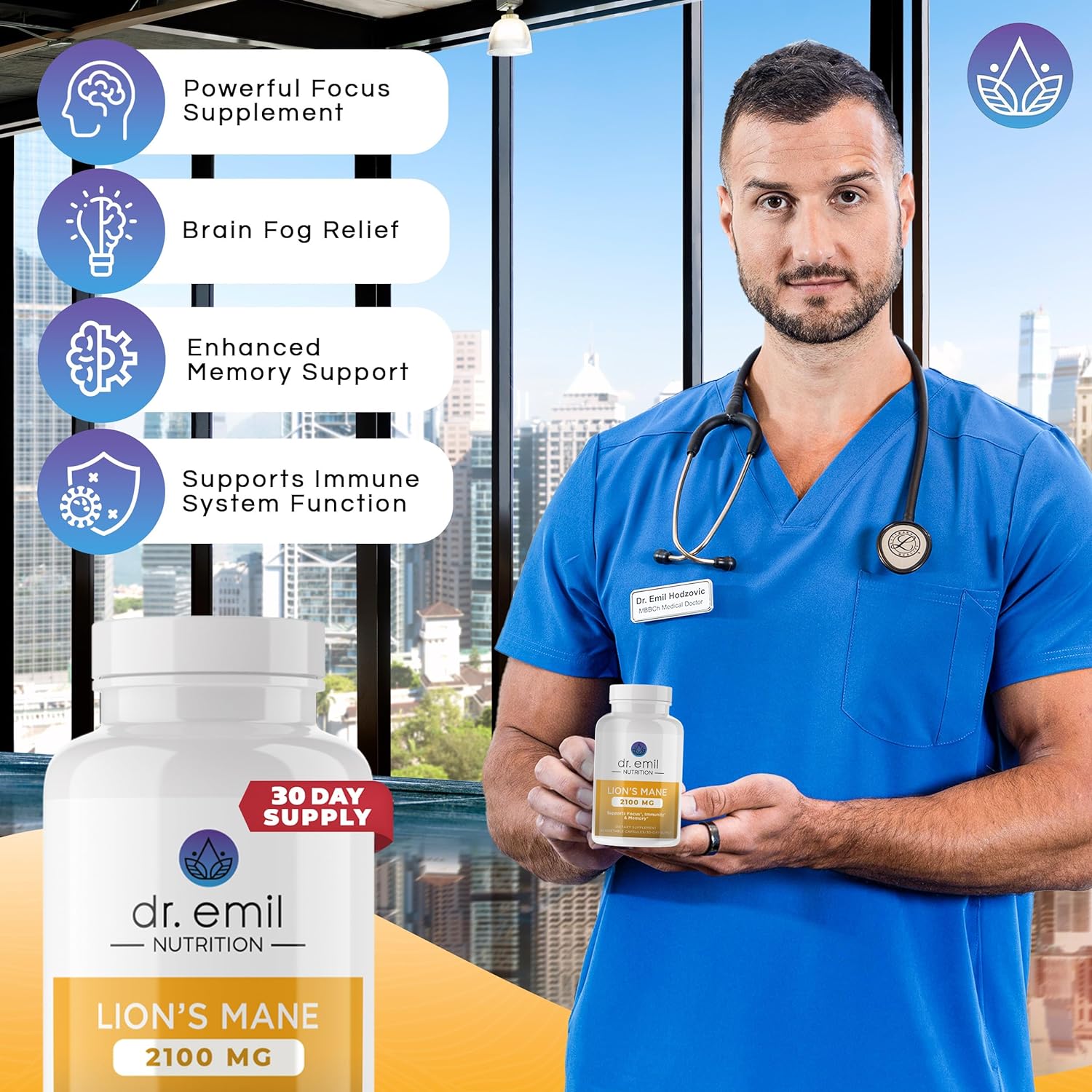 - Doctor-derived formula - Dr. Emil Hodzovic has painstakingly formulated our lions mane extract with the highest quality ingredients that are gluten-free, non-GMO, manufactured in a cGMP facility and 100% free of hype, hormones, and empty promises.
