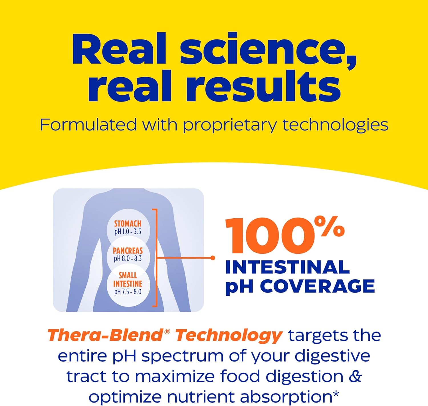 - Powered by thera-blend: Experience faster relief and better digestion thanks to Thera-blend enzymes, formulated to stay active through acidic and neutral environments in the digestive system