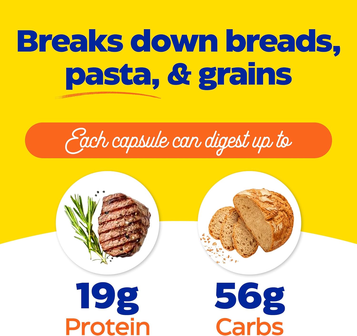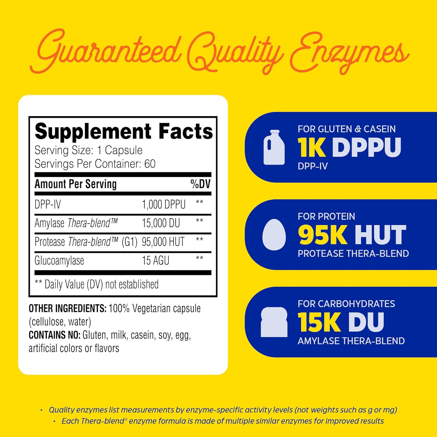 - Specialized protection: Reduce occasional bloating and gas with help from the protease enzyme, DPP-IV; Amylase enzymes target gluten-rich carbohydrates in grains