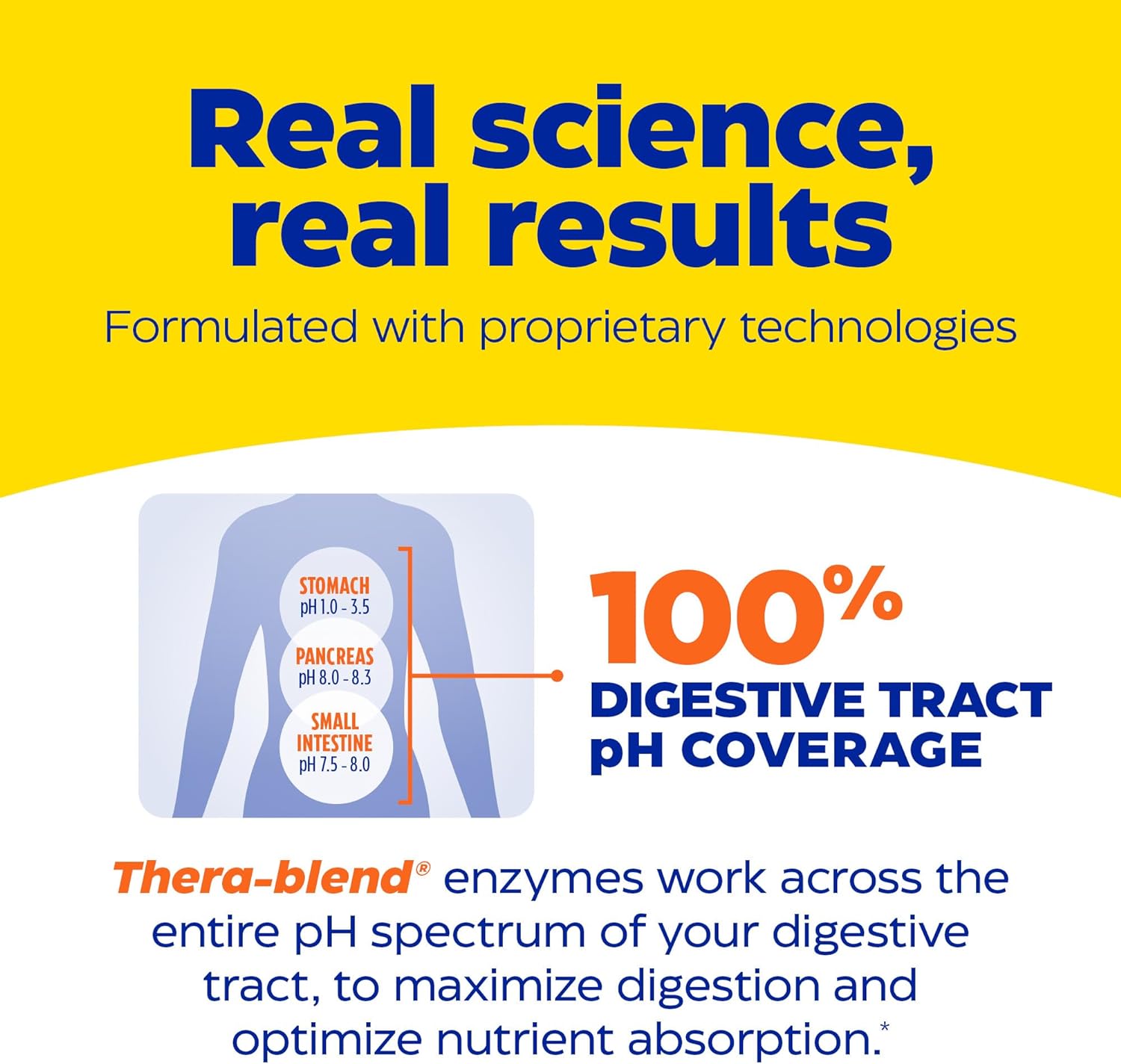 - Powered by Thera-blend: Experience faster relief and better digestion thanks to Thera-blend enzymes, formulated to stay active through acidic and neutral environments in the digestive system
