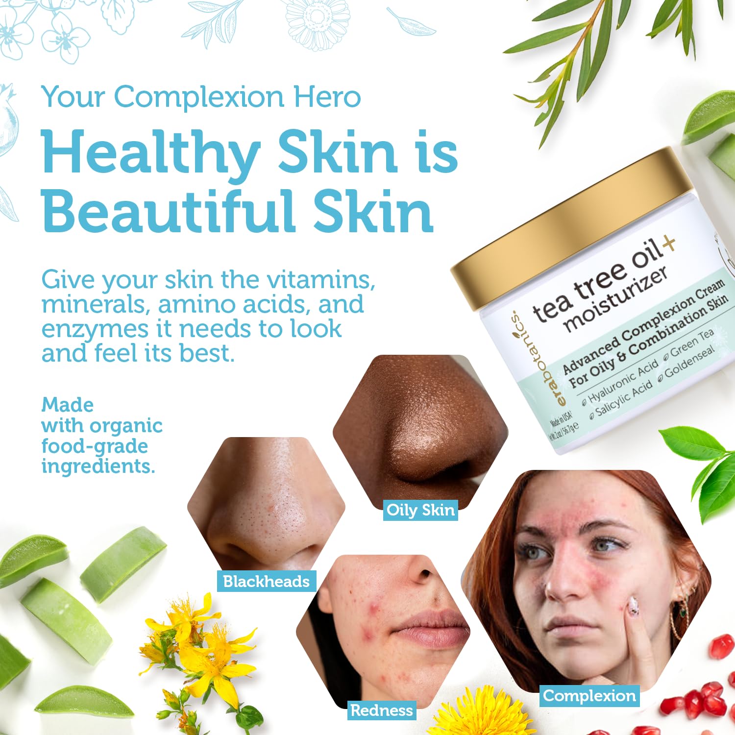 - NUTRIENT-RICH TEA TREE FACE CREAM FOR OILY SKIN. Using Tea Tree Oil for acne is a centuries old natural remedy that still works today. Our face moisturizer for oily skin is perfect for helping with blemishes, blackheads, cystic acne, redness and combination skin. Get balanced, smoother and clearer looking skin.
