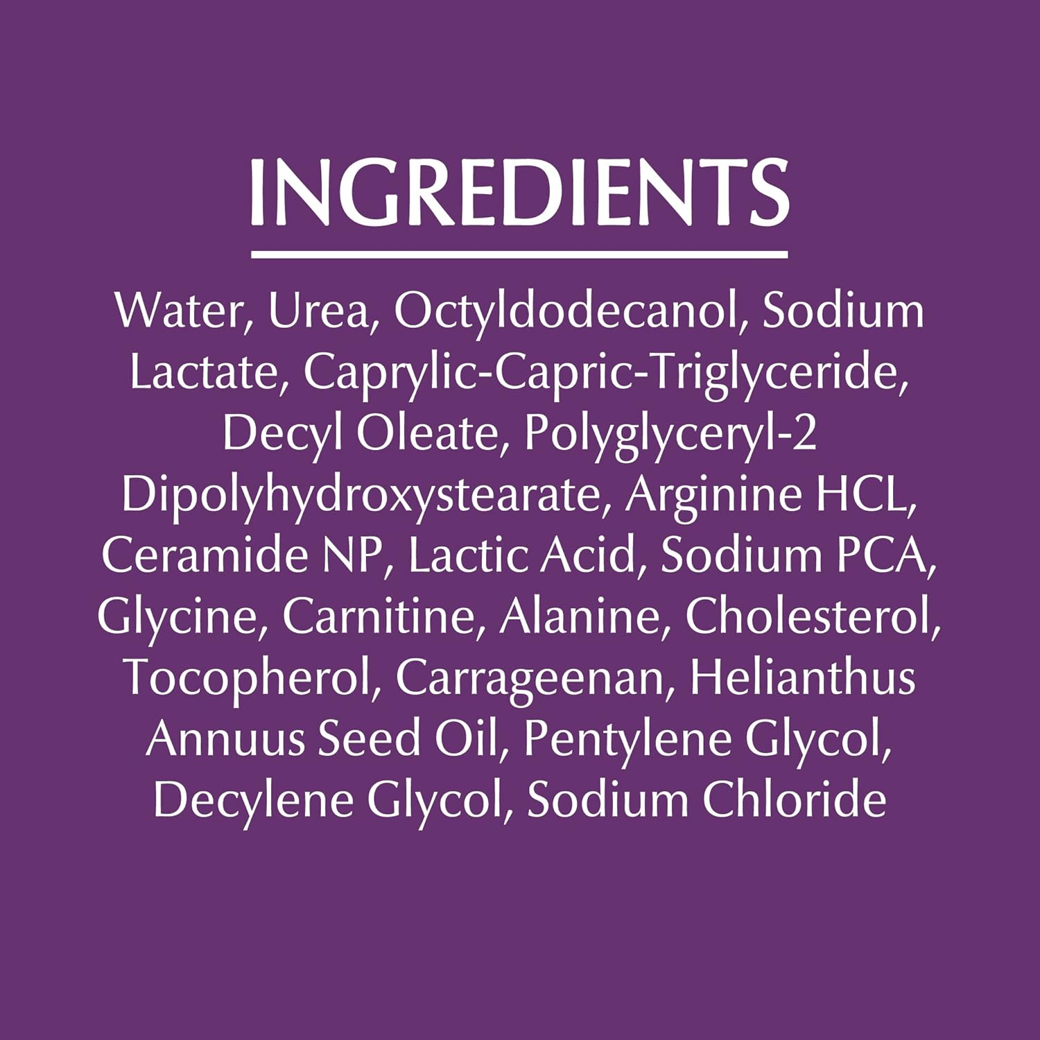 Water, Urea, Octyldodecanol, Sodium Lactate, Caprylic/Capric Triglyceride, Decyl Oleate, Polyglyceryl-2 Dipolyhydroxystearate, Arginine HCl, Ceramide NP, Lactic Acid, Sodium PCA, Glycine, Carnitine, Alanine, Cholesterol, Tocopherol, Carrageenan, Helianthus Annuus (Sunflower) Seed Oil, Pentylene Glycol, Decylene Glycol, Sodium Chloride