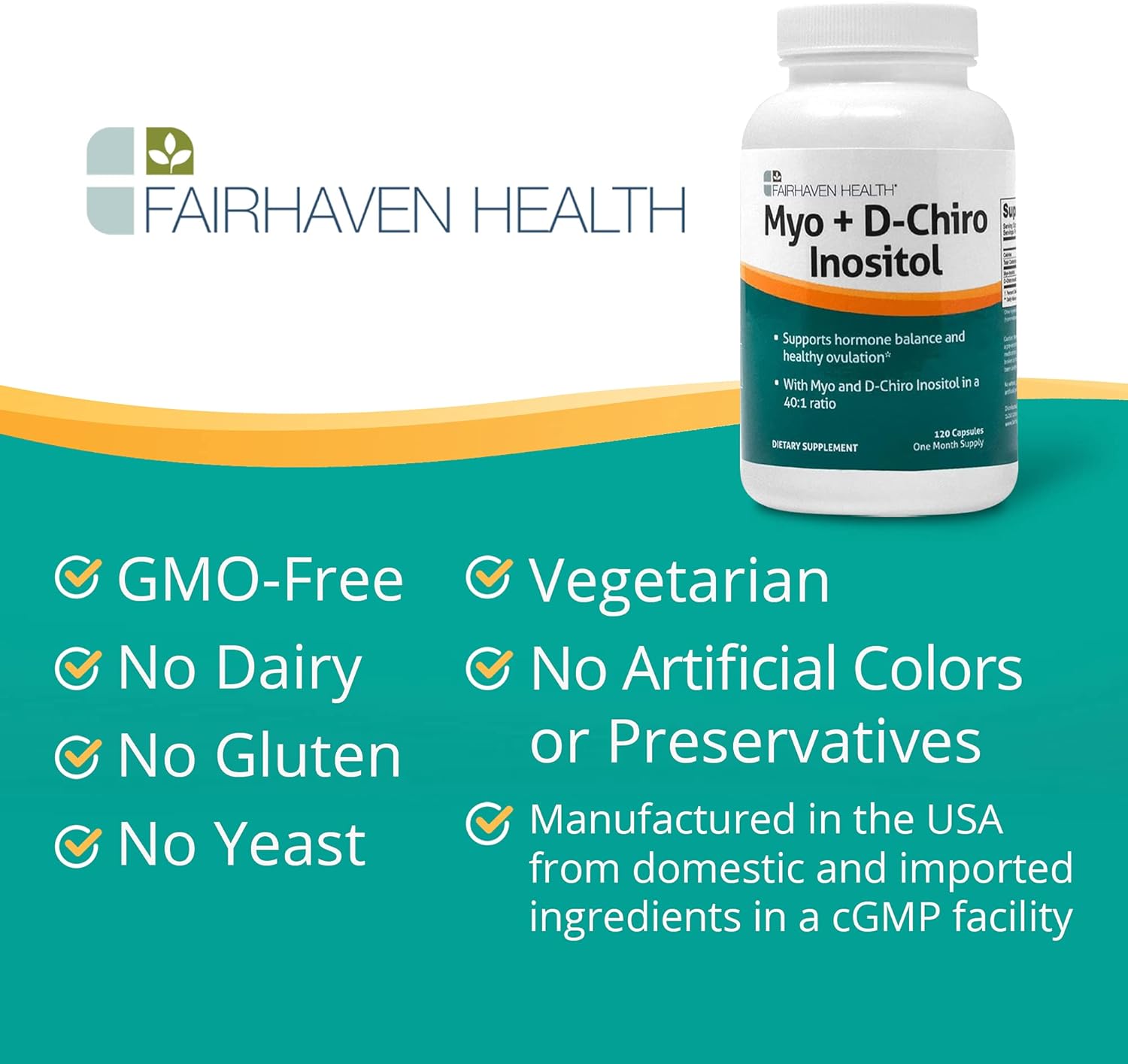 | Product Benefits | Fairhaven Health Myo-Inositol and D-Chiro Inositol Blend, 40:1 Ratio, Female Fertility Supplement for Regular Cycles, B8, 2000mg Myoinositol, 50mg D Chiro, 1 Month SupplyFairhaven Health Myo-Inositol and D-Chiro Inositol Blend, 40:1 Ratio, Female Fertility Supplement for Regular Cycles, B8, 2000mg |