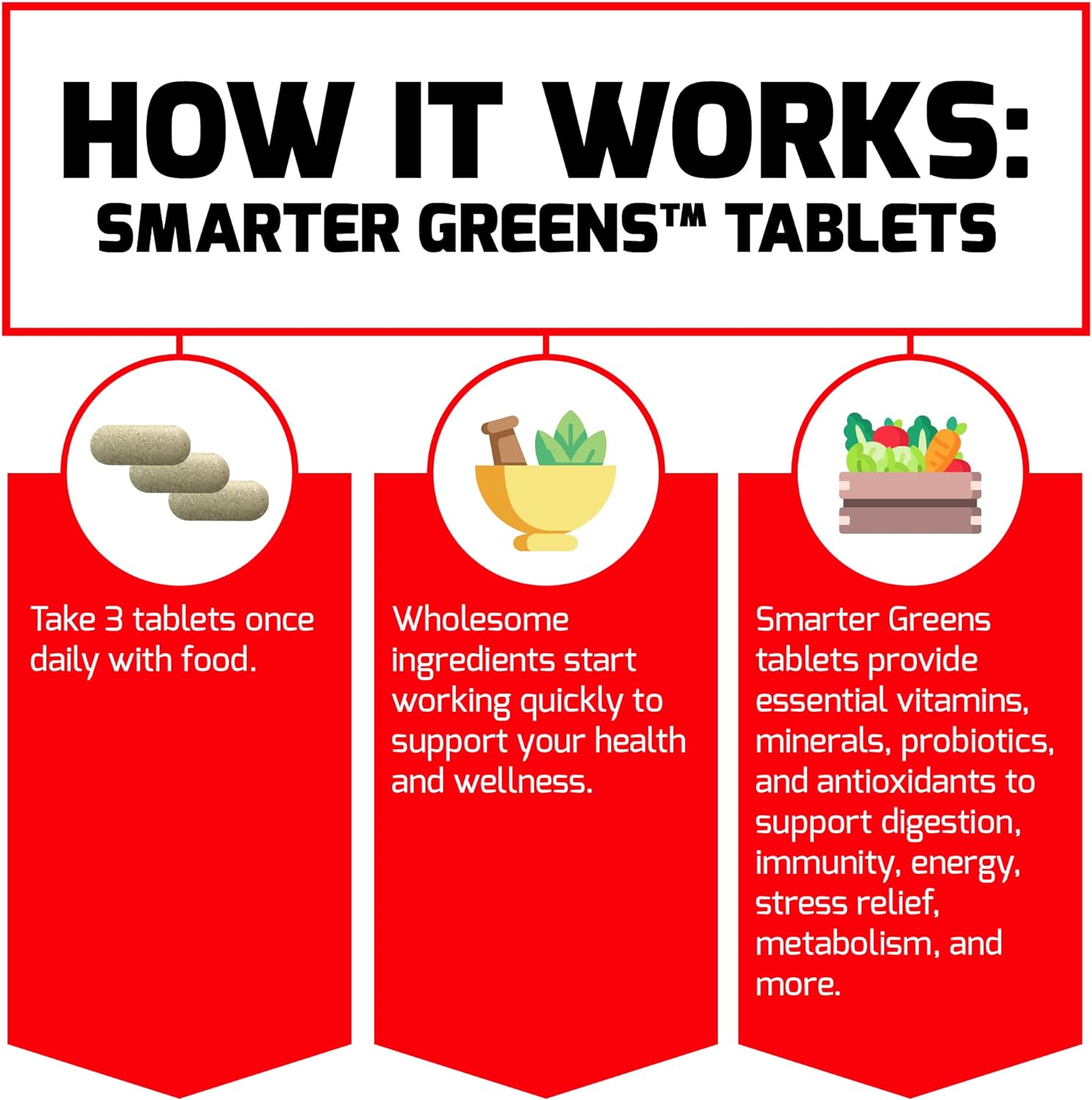 ULTIMATE CONVENIENCE: Sometimes there’s just no time to mix up your favorite greens powder. Smarter Greens Tablets are a quick and easy way to boost your daily nutrition with a wholesome blend of fruits, vegetables, adaptogens, and antioxidants.