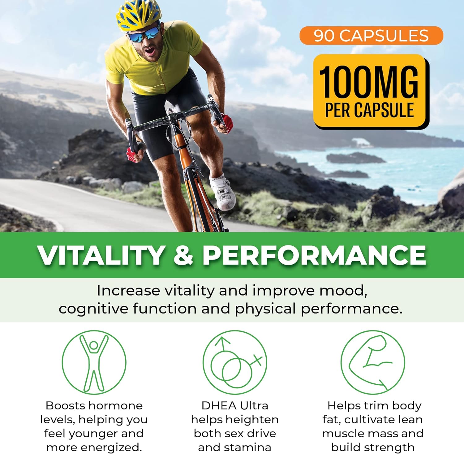 - ALL NATURAL - These veggie capsules are non GMO, vegan and free from dairy, gluten, eggs and nuts, tree nuts, shellfish and sugar. 90 Count Ultra DHEA for best value 3 months supply.