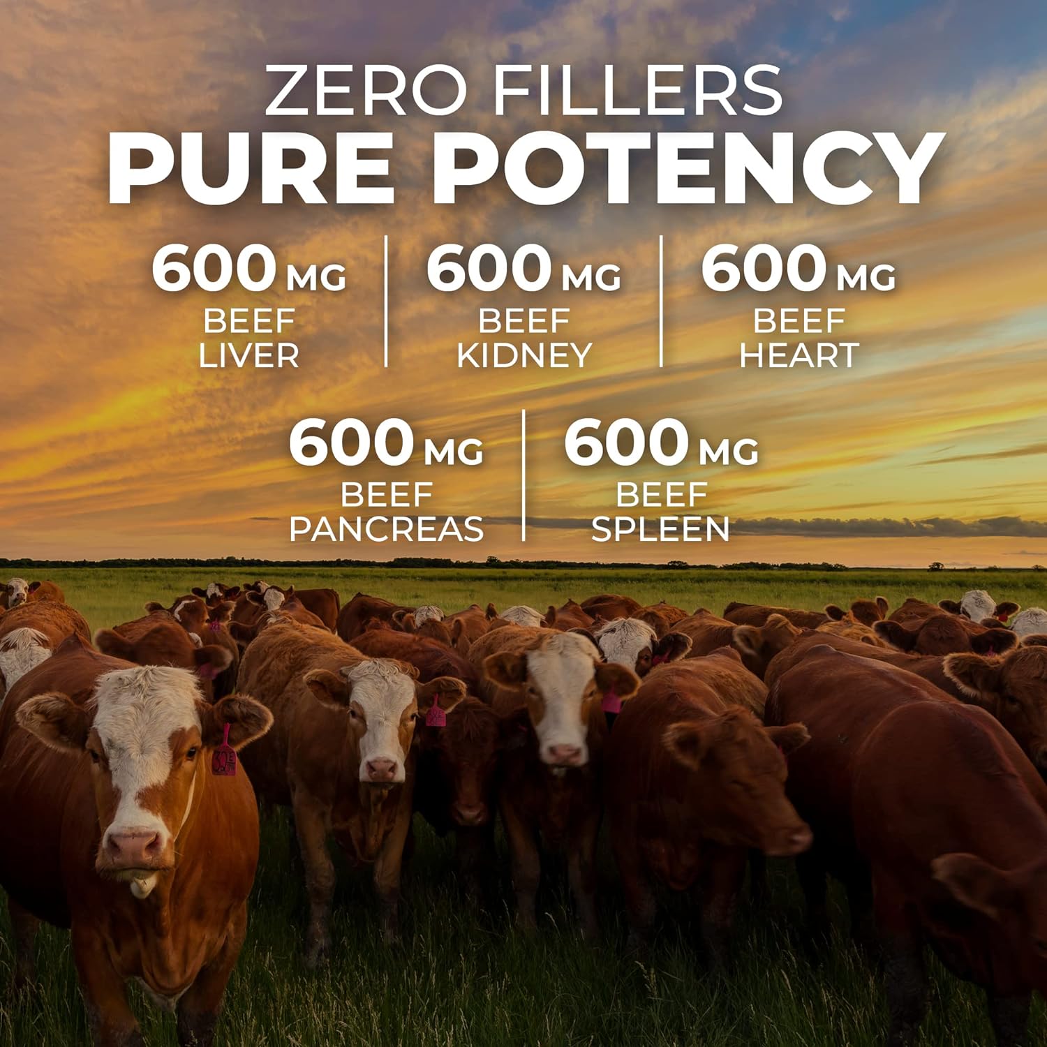 - Free Range, Grass Fed & Pasture Raised -- Going 4 steps further than standard grass fed beef liver capsules, our bovine multivitamin contains 4 more nutrient-dense organs (freeze-dried and desiccated) to promote energy, gut digestion and cellular support at every level.