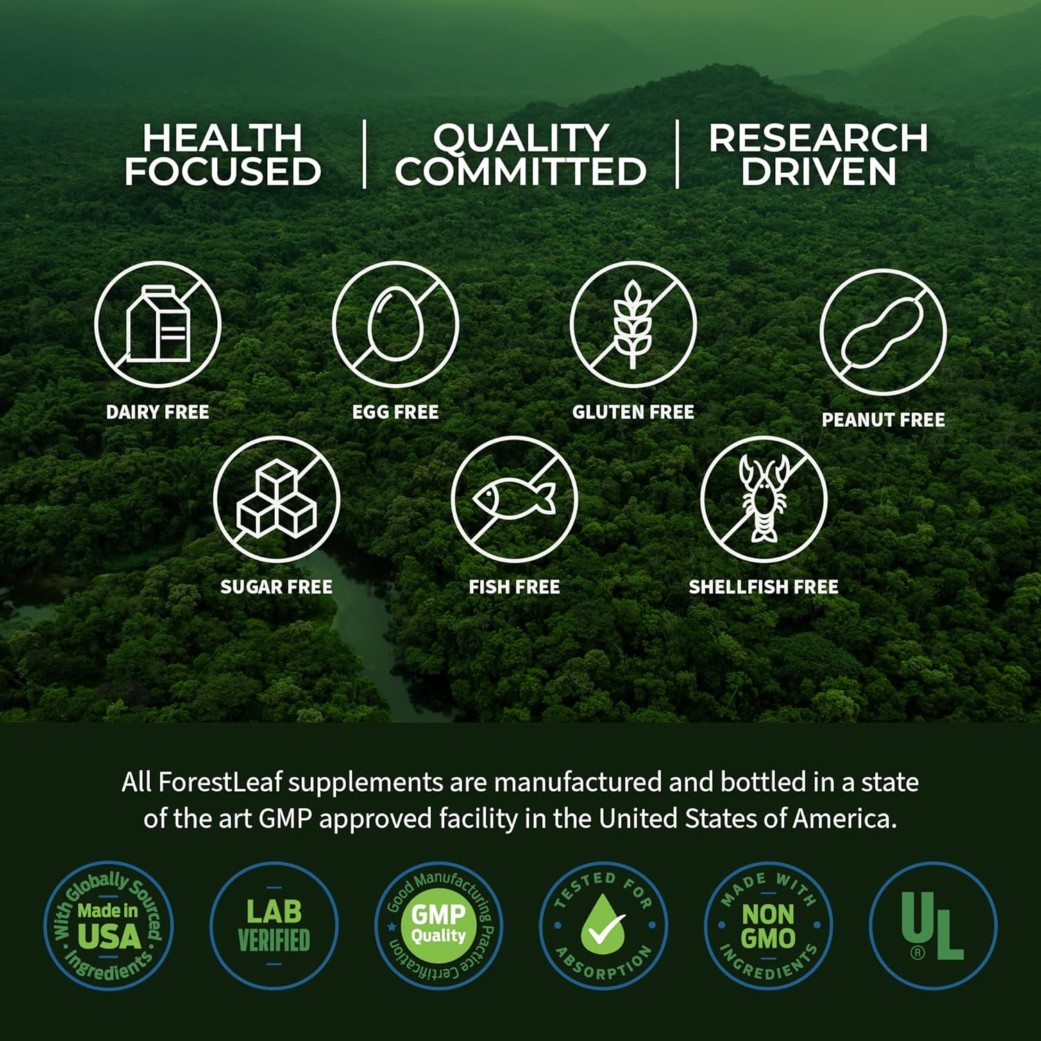 Lab Tested & Verified Ingredient Quality -- Dairy, Egg, Nut, and Gluten Free. Non GMO. Free from hormones. ForestLeaf products are homemade right here in the USA and formulated with only the essentials... no other fillers or additives. Independently lab-tested and verified for absorption. Produced in a GMP compliant facility.