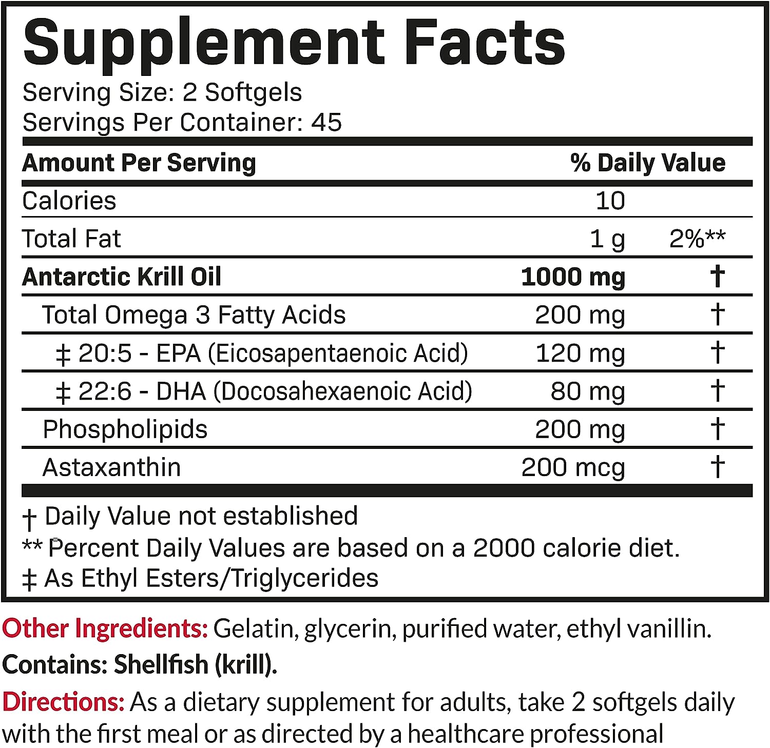 - Premium Antarctic Krill Oil: We only use superior sourced krill that is harvested in the waters of Antarctica. Providing 1000 mg per serving (2 softgels).