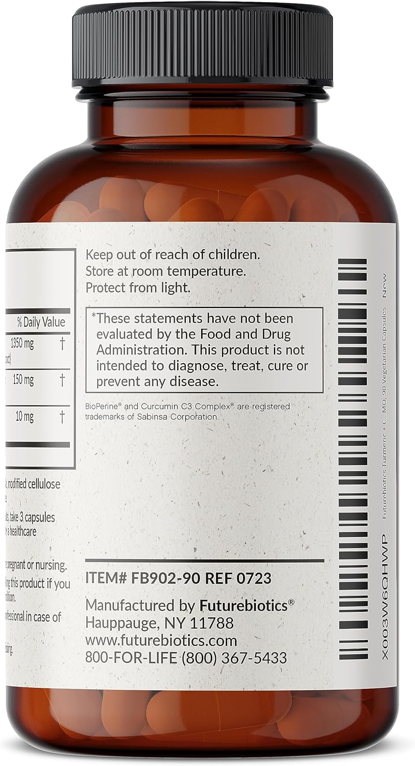 - High Potency Turmeric: Turmeric is an Indian spice that has been used for centuries for its variety of wellness benefits. Futurebiotics Turmeric + Curcumin provides 1500 MG per serving (3 Vegetarian Capsules) to support antioxidant, joint and digestion.*