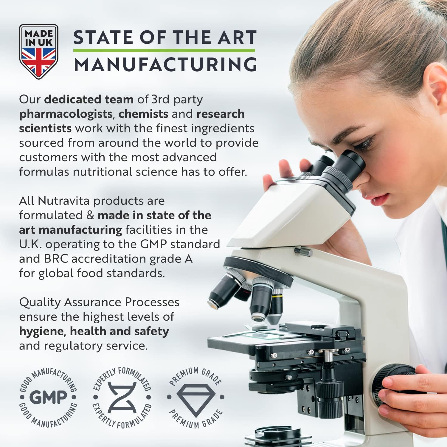 ✔ WHAT IS THE STORY BEHIND NUTRAVITA? - Nutravita is a recognised and trusted Vitamins & Supplements brand providing thousands of customers across the world for over 6 years. Our high quality products are manufactured, batch tested and certified in the UK, and safeguarded by the highest manufacturing standards in the world (GMP, BRC). We have a dedicated team of pharmacologists, chemists and research scientists working to source the finest and most beneficial ingredients.