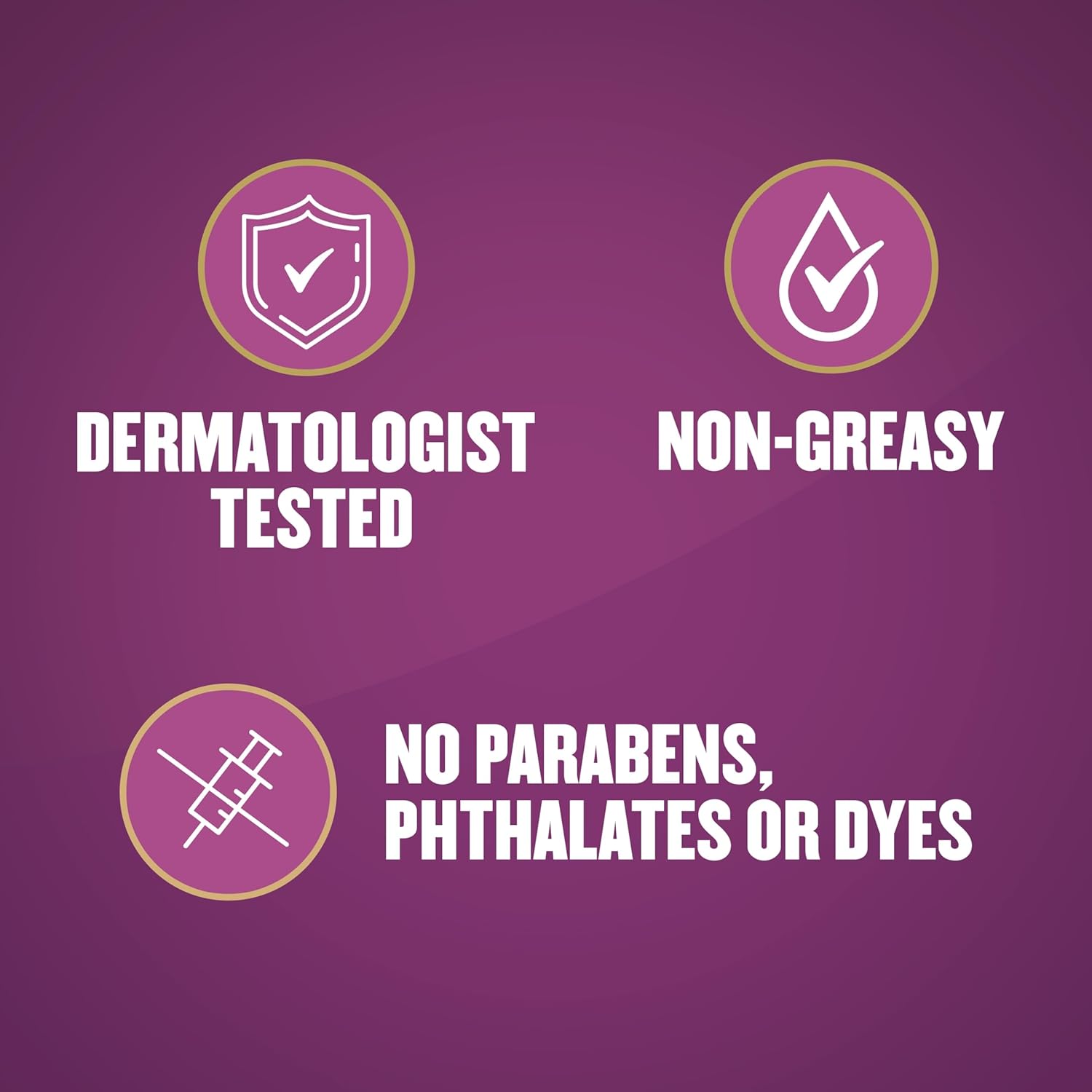 - Dermatologist-tested, nongreasy and free from parabens, phthalates, and dyes