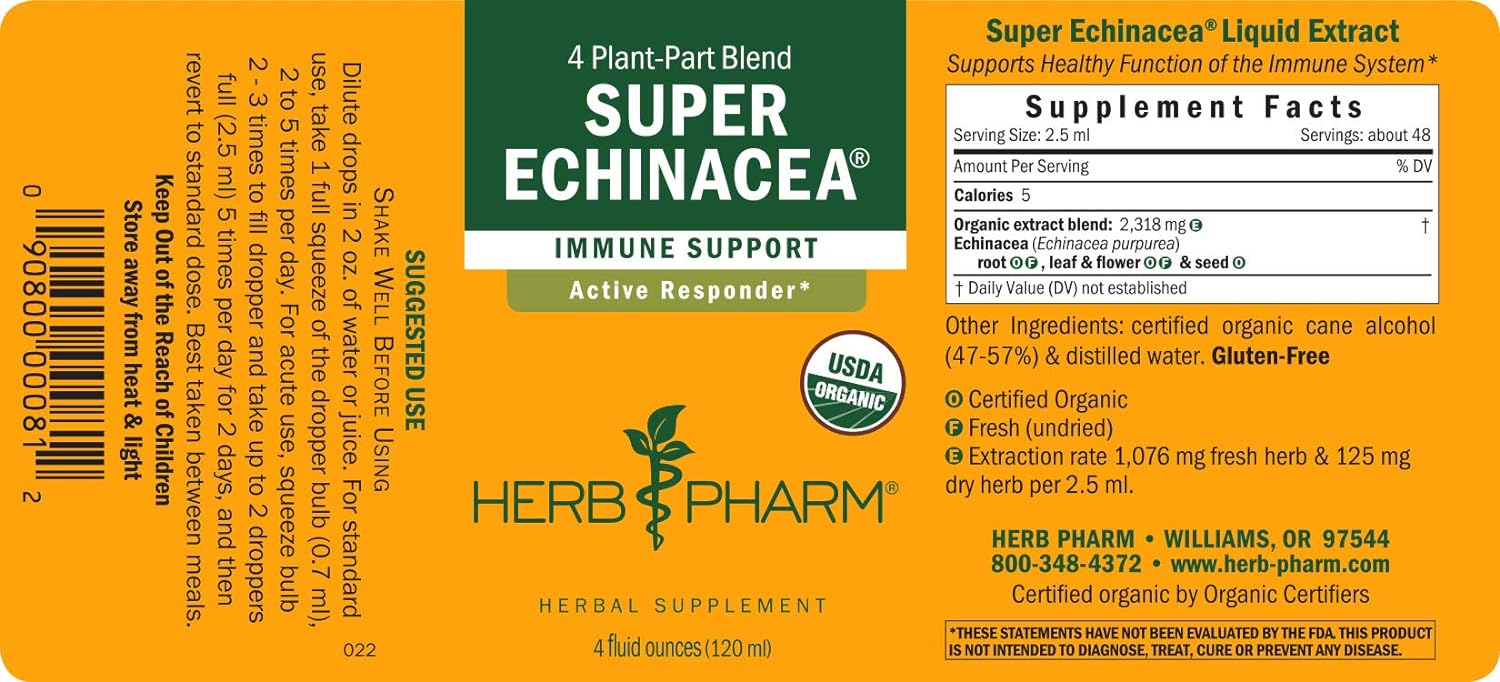 Herb Pharm Certified Organic Super Echinacea Liquid Extract 4 Oz