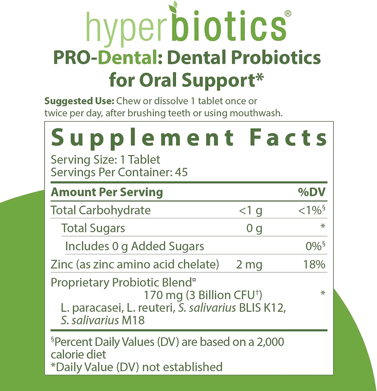 - Ears, Nose, and Throat Probiotics For Oral Health: 3 Billion CFU in a chewable tablet with 4 targeted strains. When your oral microbiome is populated with strong probiotic colonies, you are equipped with natural defenses against common invaders. PRO-Dental is formulated with targeted probiotic strains to replenish the balance of good bacteria and may support oral and immune health.*