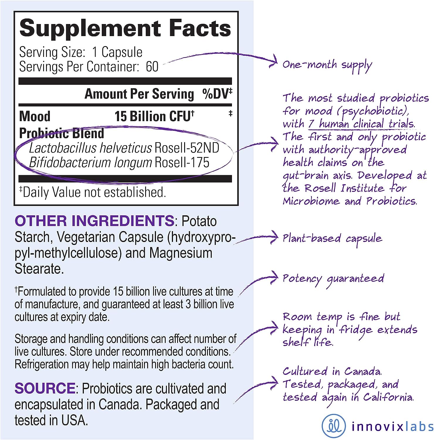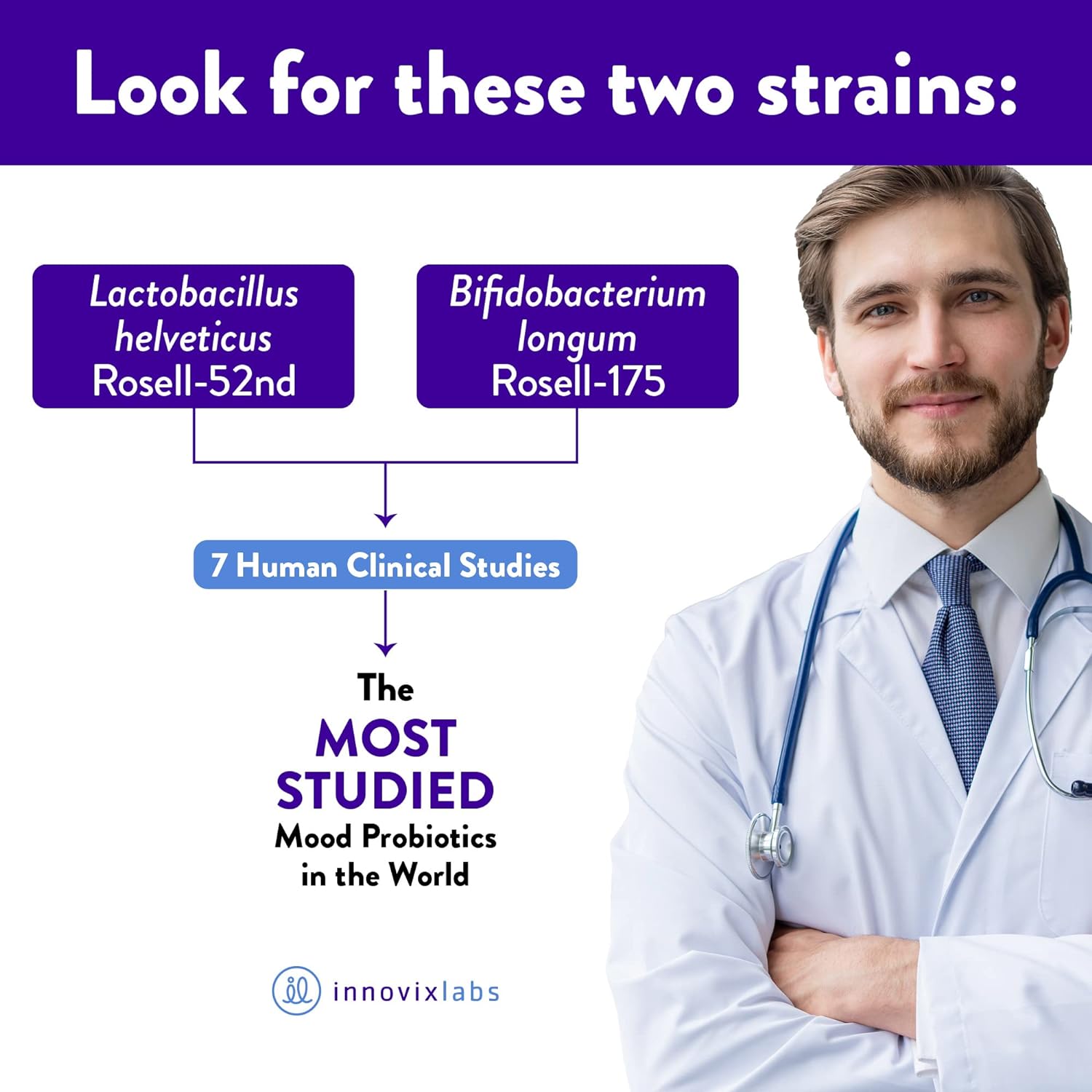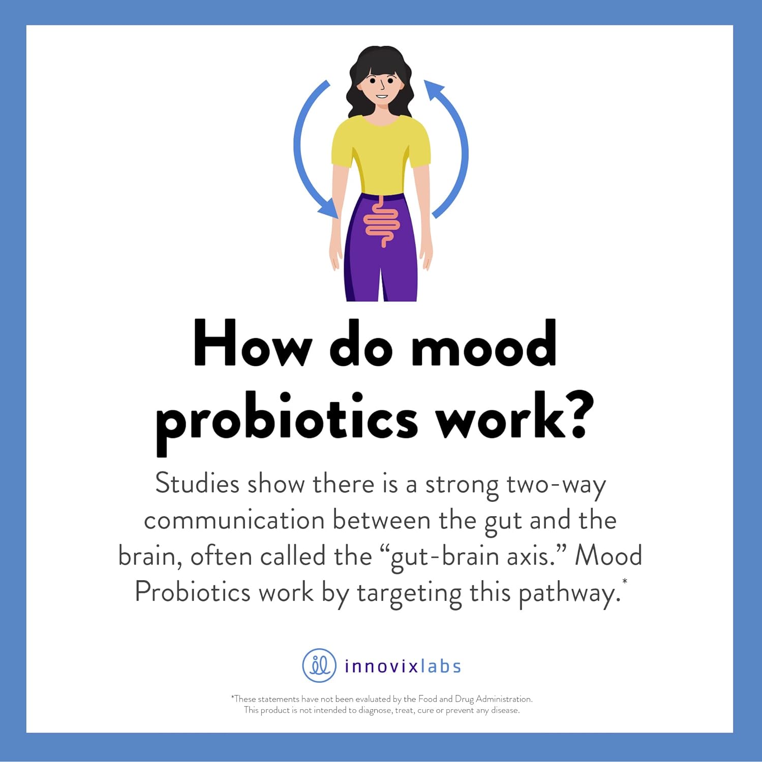 - Mood Probiotics - Leverage the powerful gut-brain connection with InnovixLabs Mood Probiotic. This "psychobiotics" lactobacillus probiotic blend is designed and backed by science to go beyond digestive support, by enhancing emotional wellbeing too.*