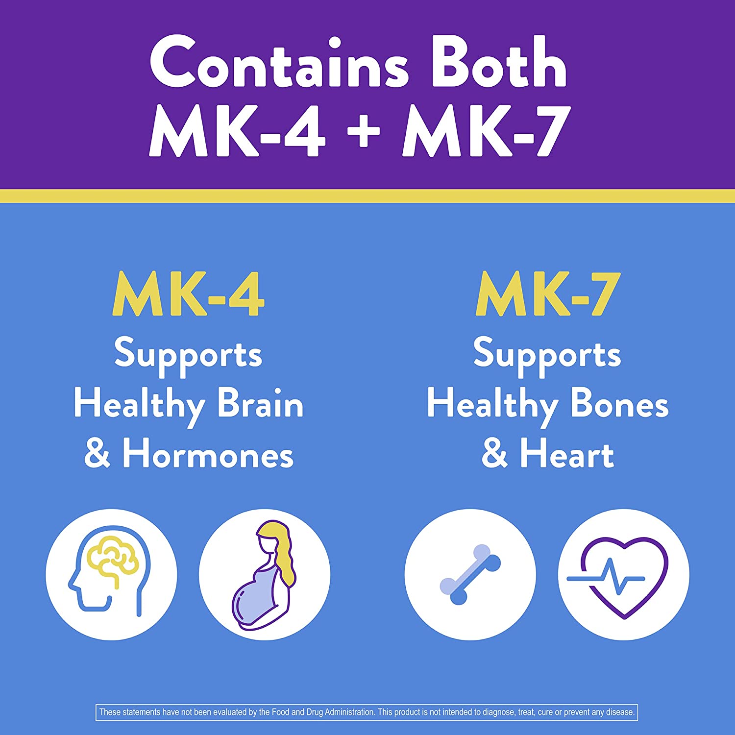 - CONTAINS MK-4 AND MK-7: MK-4 and MK-7 are distinct vitamins and play separate roles in your health. Only MK-4 is found in the brain, fetus, and breast milk. MK-4 is the predominant K2 in the body. MK-7, which goes to work in the bones, is longer acting.*