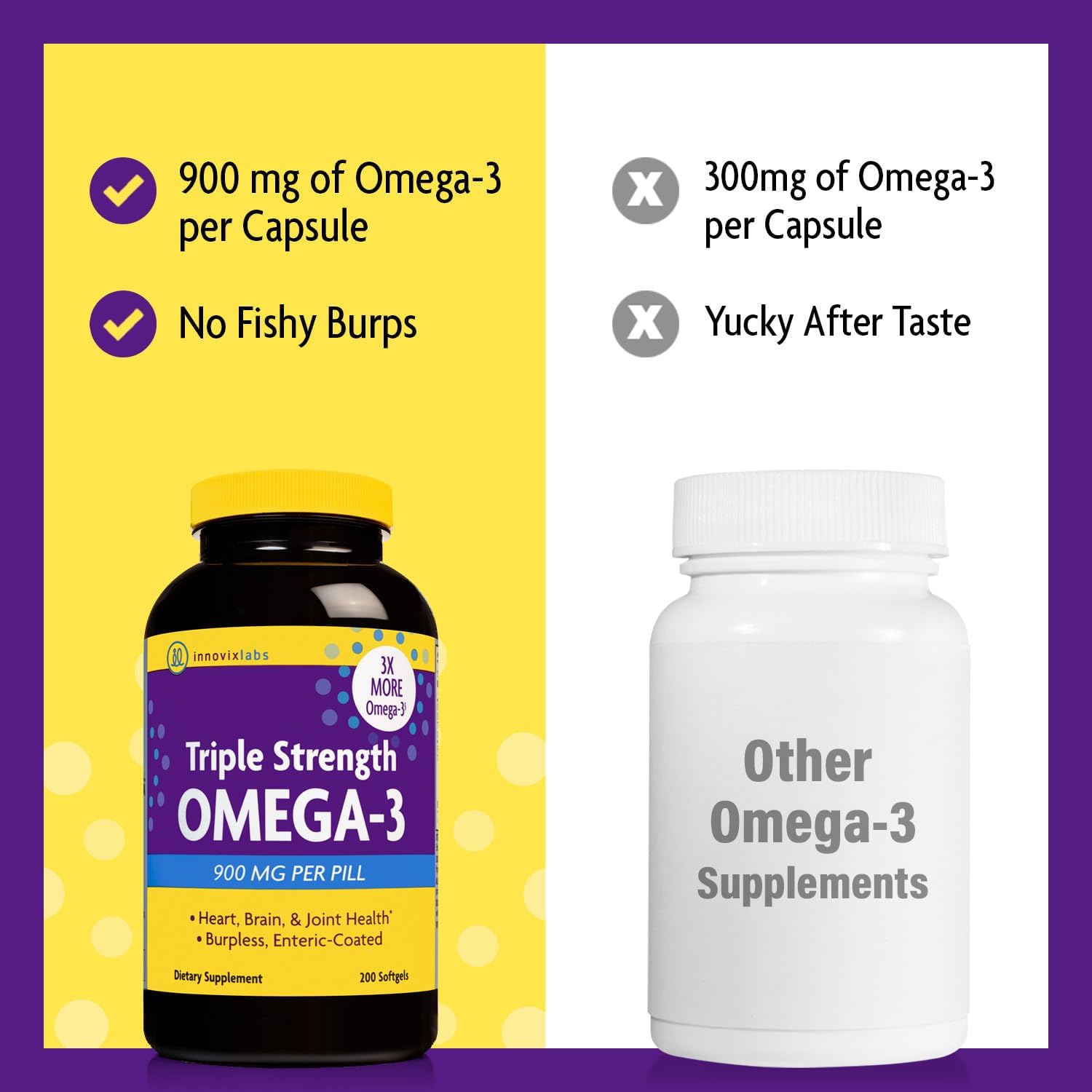 InnovixLabs Triple Strength Omega 3 Fish Oil Supplement - 900 mg 200 count