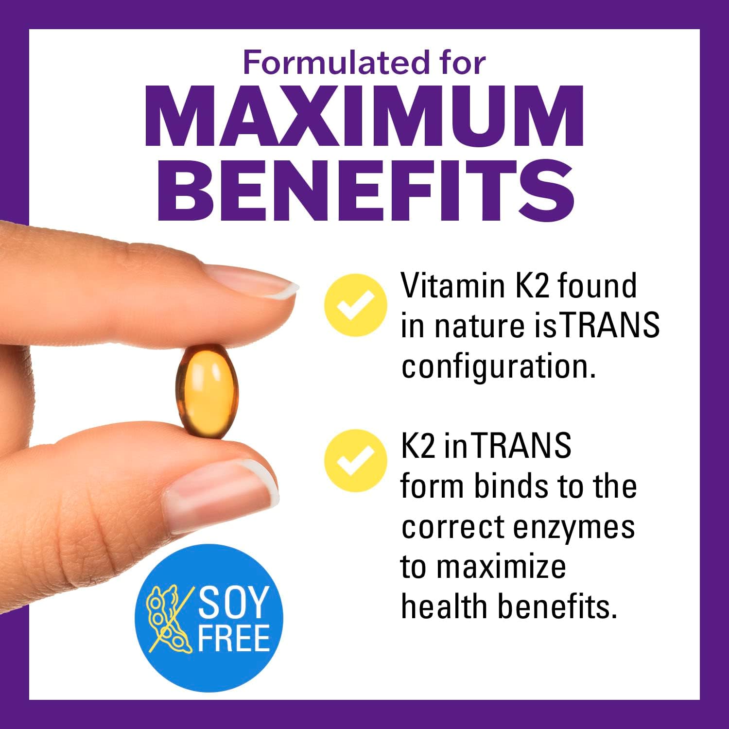 - Both Forms of Vitamin K2 - Say goodbye to less efficient vit K2 D3 blends! Our vitamin K2 supplement features bioactive TRANS forms of vitamin K2 MK4 MK-7 that are easily absorbed by your body, providing maximum benefits.