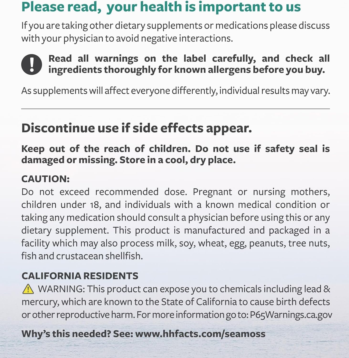 - Pure Quality, No Fillers: We prioritize your health. Our Sea Moss formula is free from fillers like magnesium stearate, silicone dioxide, and rice flour. Just a pure blend of fresh Sea Moss powder in a convenient capsule, no gummies, pills, or gel. Experience the pure goodness of real Sea Moss without any unnecessary additives.