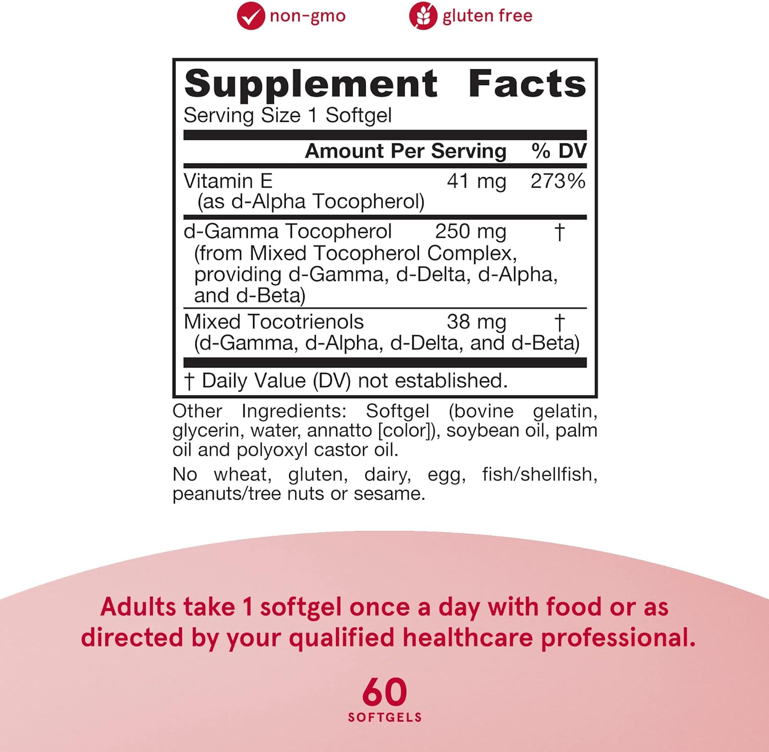 - Convenient Softgels - Each contains all 8 members of the vitamin E family. Adults take 1 softgel per day with a meal or as directed by your qualified healthcare professional.
