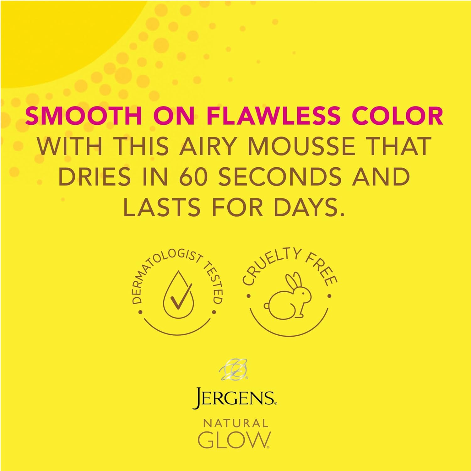 Get a beautiful, quick, natural looking tan in just 60 seconds by smoothing on streak free Jergens Natural Glow Instant Sun Sunless Tanning Mousse for Body. This lightweight, odor free deep color mousse works with your skin tone to mimic results you’d get from the natural sun, and without the unpleasant sunless tanner odor. Dark self tanner's tinted formula lets you see where you’ve applied it, so the result is a precise, even glow that dries in 60 seconds. The instant natural bronze color will continue to develop for several hours after application to a natural looking shade. If you’d like deeper fake tan color, the sunless tanner formula is buildable, and can be applied again the next day. It’s safe, hassle-free color even when the beach is miles (or months) away. This natural bronzer by Kao USA will leave gorgeous skin looking sun kissed, no matter what time of the year it is. Sunless tanning has never been easier. Satisfaction Guaranteed. Limitations may apply.