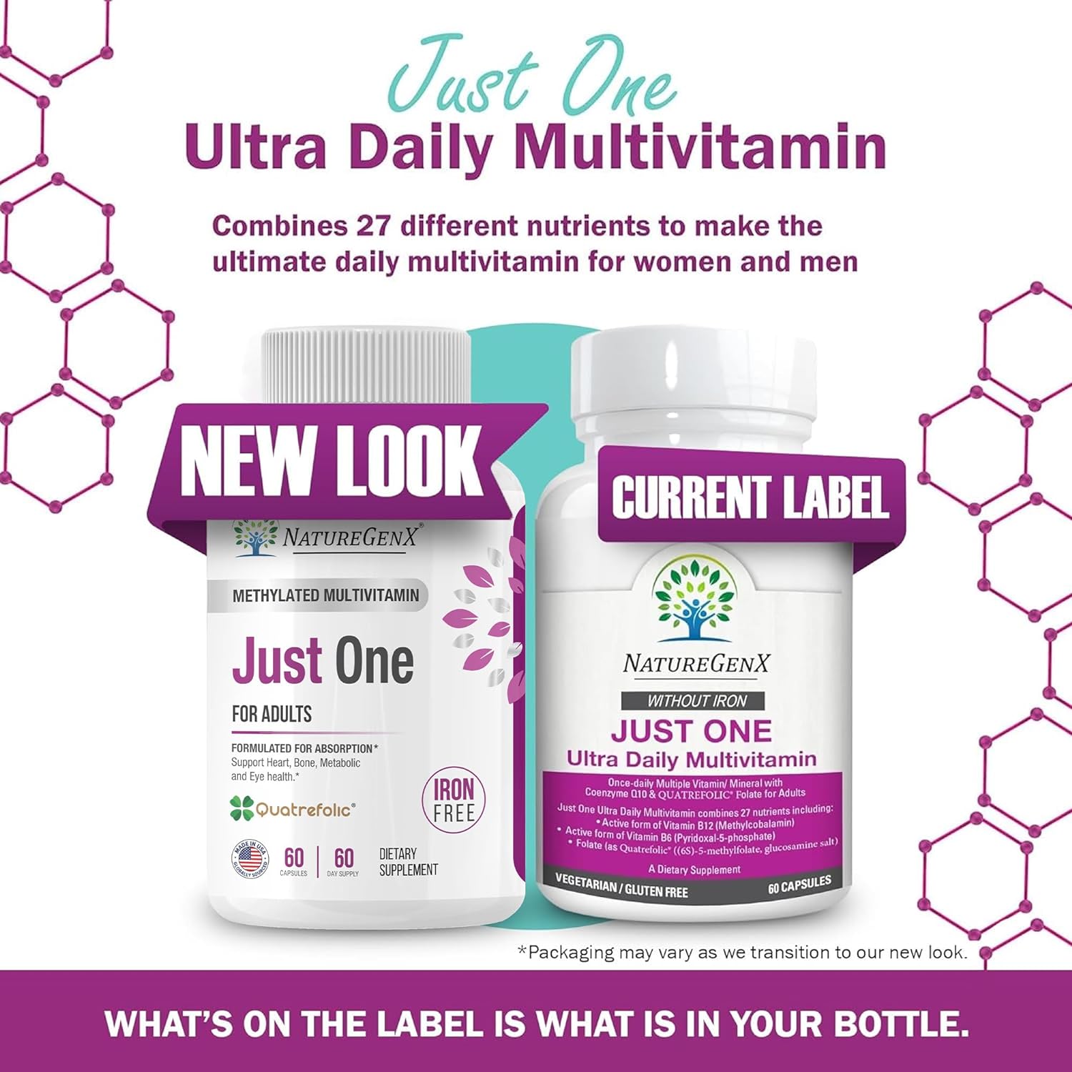 - 2 MONTHS SUPPLY BALANCED WELL-BEING WITH IRON-FREE MULTIVITAMINS FOR ADULTS; MEN & WOMEN: Unlock a healthier you with our 60-capsule, 2-month supply of NatureGenX Methylated Multivitamin. packs 27 nutrients to fill modern diet gaps and conveniently helps bone, immune, metabolic, antioxidant and cardiovascular health - giving you complete, balanced nutrition in just one capsule.