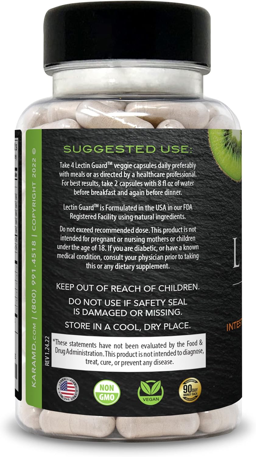 - Powerful Support Against Lectins: KaraMD's Lectin Guard gut health supplement supports your body in blocking lectins. Harmful lectins can cause constipation, gas, and other stomach problems. This supplement acts as a gut wall shield to help with digestive health.