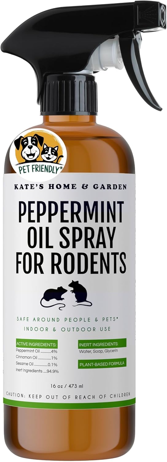 - CHILD AND PET SAFE RODENT REPELLENT INDOOR: This peppermint oil spray for rodent is made with peppermint oil concentrate and cinnamon to repel mice, mouse and rats; it is safe to use around pets and children because it is non-toxic; this is why Kate Naturals Rodent Repellent Spray is a great indoor pest control spray for your household; if the sprayer is broken, please contact us for a replacement
