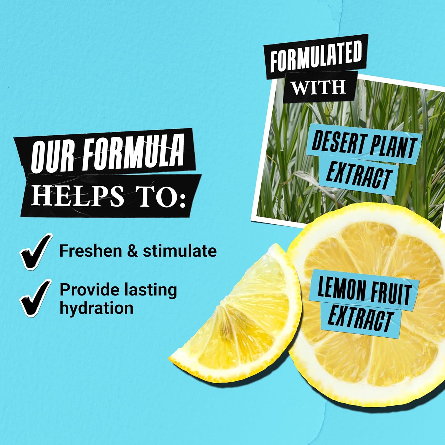 Infused with Desert Plant Extract, known to provide immediate and lasting hydration for dry skin and Lemon Fruit Extract, known for its astringent qualities.
