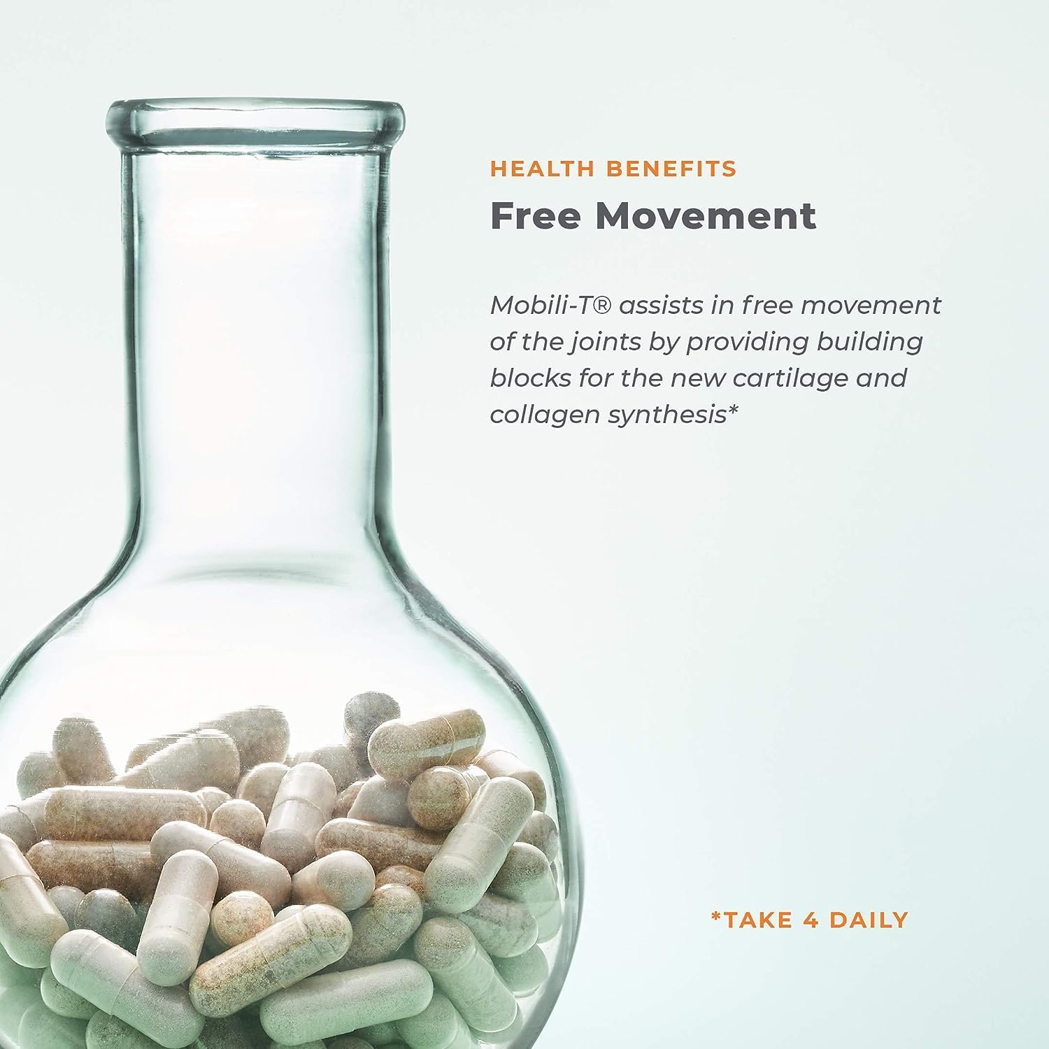 - Health Benefits - Mobili-T assists in free movement of the joints by providing building blocks for new cartilage and collagen synthesis. It also assists in moisturizing the joints to help support ease and range of mobility.