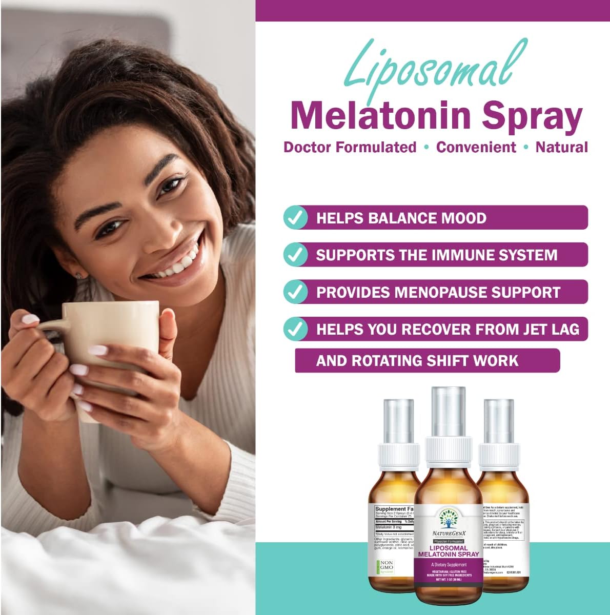 NatureGenX liposomal melatonin spray delivers 3 mg of liquid melatonin in every dose. This unique liposomal delivery technique may help your body absorb the melatonin quickly and can give you the highest concentration from each dose. Our bedtime spray can decrease the amount of time it takes to fall asleep and may help you sleep longer, which means you may spend more time actually getting good, quality sleep. With restful sleep, you may wake up feeling refreshed and energized every morning.